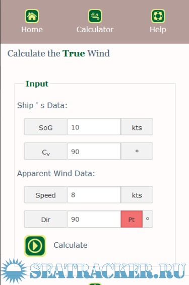 Description: Based on ship's data (heading and speed over ground), this nautical wind calculator returns true and apparent wind (speed and direction). Anemometers on board of a ship often measure apparent wind. This app lets you quickly convert to true wind.