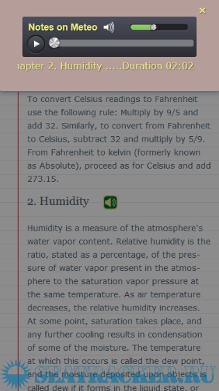 Each chapter in the theory section has a loudspeaker icon. You can click on this to convert the text to speech, no internet connection needed. Enjoy!