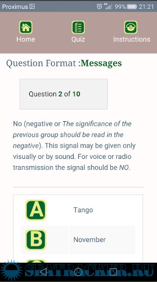 Year: 2019 Version: 0.0.40 Developer: DBG Nautical Platform: Android System Requirements: Android 4.4+ Localization: english Crack: Not needed Description: This ad free, ICS application (International Code of Signalling) was designed to learn and self-test your knowledge on the ICS-nautical flags. Knowledge of ICS flags and associated messages is mandatory in order to pass a test for obtaining a boating, GMDSS or STCW license. The ICS flag trainer app has 3 menus. First the Browser menu Here you will find in alphabetical order all ICS flags for letters and numbers. Each flag shows a complete page with picture, text message, Morse code, signalling with (ALDIS) light bulb and signalling with a pennant. You may spent some time on these pages before going to the next menu. Second the Quiz menu Here you can test your knowledge with a series of 10 questions. You can choose questions on flags, messages or Morse codes. Start with flags and then go on to messages and later Morse code. You can always come back to this section to test your actual knowledge. Third the Theory menu Here you will find the text of the ICS signalling instructions. Use this as background reference. Text is divided in 10 sections. The more you know the better it is, especially if you have to take oral examinations. You can give us feedback via email using the Contact button.