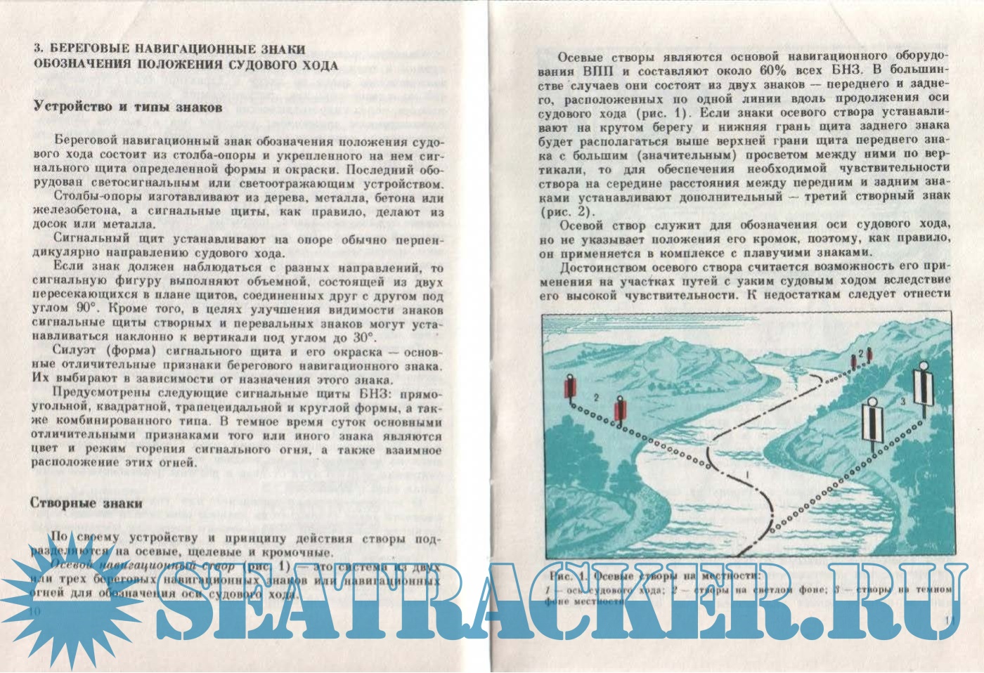 Описание: Пособие содержит основные сведения о навигационных знаках и огнях внутренних водных путей СССР, зрительных ( световых и дневных ) и звуковых сигналах судов, а также о навигационных знаках, огнях и судовой сигнализации, используемых при плавании и морских условиях.