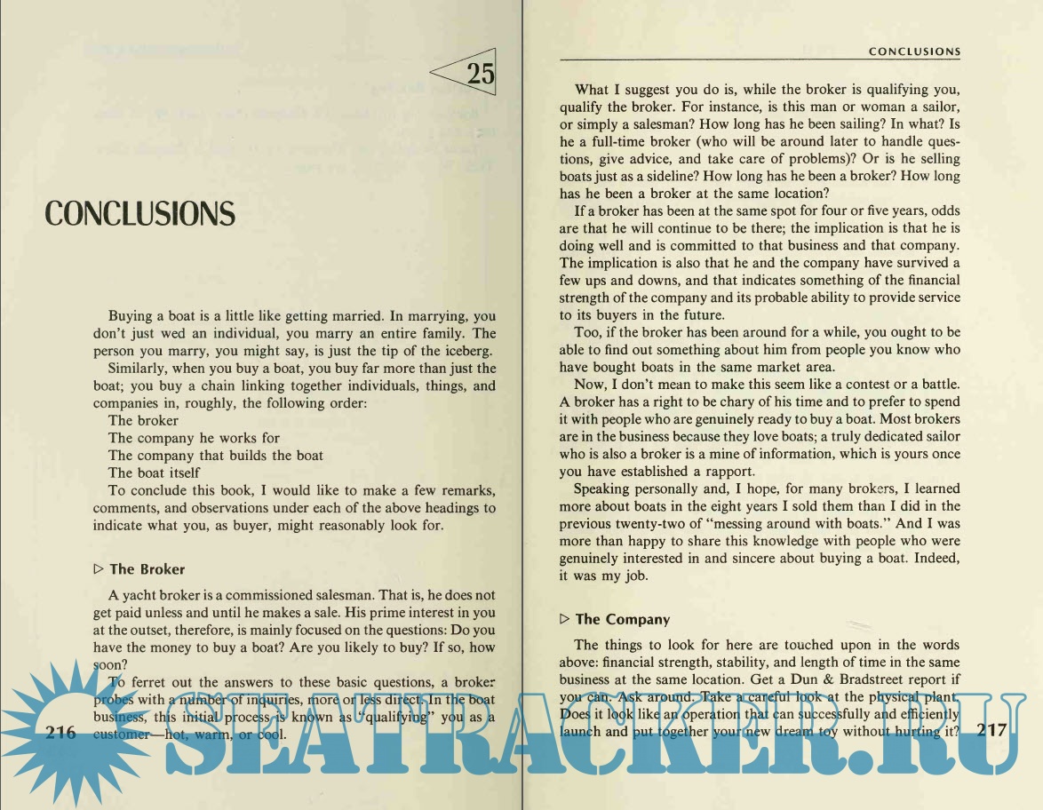 and deal with, first, a broker, and then a marine surveyor. Since the author believes boats are for fun,