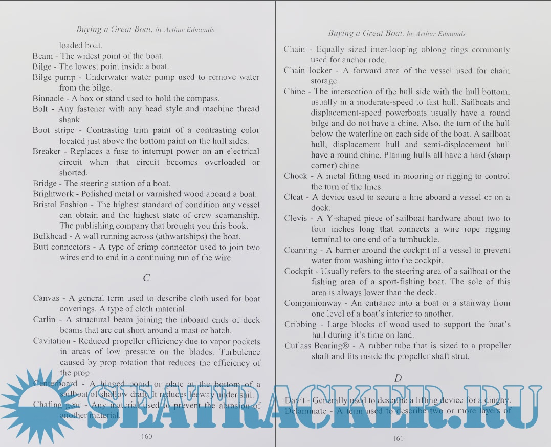 Year: 2000 Language: english Author: Arthur Edmunds Genre: Guide Publisher: Bristol Fashion Publications Edition: First ISBN: 978-1892216359 Format: PDF Quality: Scanned pages Pages count: 180 Description: When you go to a boat show or a dealer's showroom, there is an overwhelming number of boat types, styles, engines, and optional equipment. Clearly, we should be thinking about a definite type of boat before we proceed to look at the many available boats, either new or used. This choice should fit your personal preferences concerning the use of the boat and where it will be operated. It is true that a small boat may be used for many different purposes, with the exception of providing sufficient accommodations for living aboard. This book will show the differences in boat types and where each can be used efficiently. This will assist you in making a decision for the correct boat to fit your needs and to fit the time available for enjoying the pleasures of being on the water. Surely, all of us would like to have a large boat with all the comforts of home, but most of us only have a few hours each weekend in which to enjoy floating on the water. A small boat under thirty feet in length may satisfy your requirements if you have little time to spend afloat. On the other hand, if you want to live on the boat permanently, or take long cruises during your vacation time, a longer boat will provide those necessary arrangements and storage. We are not only interested in the hull and interior, but the engine type is of prime importance as this is what gets us to our objective. Engine types and costs will be discussed and the advantages of each explained. Our own preferences largely determine what boat we will buy and each individual should find the most desirable boat described within these pages. We hope you will enjoy cruising as much as we have.