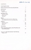 This book therefore approaches the whole problem the other way round, starting from the real live situations that you’re liable to come across while racing. So rather than looking for a rule which might apply to the situation in question, you can turn straight to that situation and read which rule applies, how it applies and why it applies.