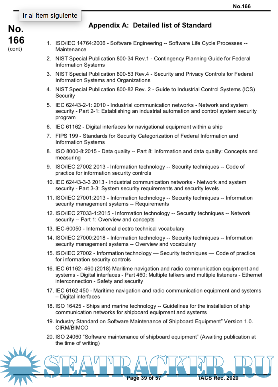 Description: The purpose of this recommendation is to provide technical requirements to stakeholders which would lead to delivery of cyber resilient ships, whose resilience can be maintained throughout their service life.