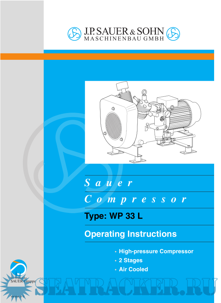 Description: Operating Instruction with spare parts list for Air Cooled 2-stage high-pressure Air compressor Sauer type WP33L