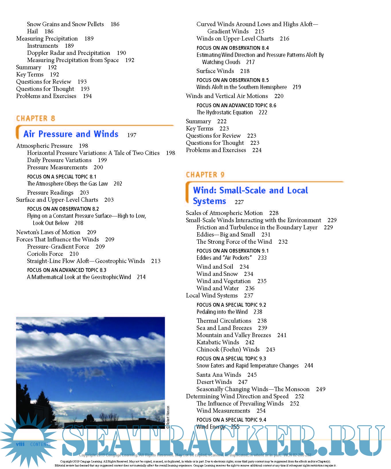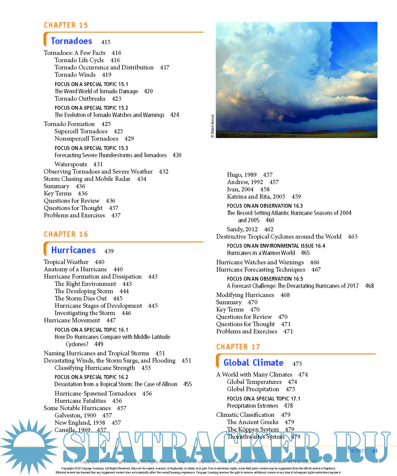 Year: 2019 Language: english Author: C. Donald Ahrens and Robert Henson Genre: Handbook Publisher: Cengage Learning, Inc. Edition: 12th ISBN: 978-1-337-61666-9 Format: PDF Quality: eBook Pages count: 677 Description: “Meteorology Today: An Introduction to Weather, Climate, and the Environment” by meteorologists C. Donald Ahrens and Robert Henson combines the latest in weather, climate and earth science to introduce students to the concepts and current issues of meteorology. Grounded in the scientific method, the new edition of this highly visual text shows students how to observe, calculate and synthesize information as budding scientists. Specific discussions centre on severe weather systems like tornadoes and hurricanes, as well as everyday elements like wind, precipitation and the seasons. The MindTap course provides students with engaging features such as Concept Animations, a digital Study Guide, and summative EOC assessment. New assignable Case Study activities in each chapter allow students to apply their knowledge to real life studies and meteorological events.