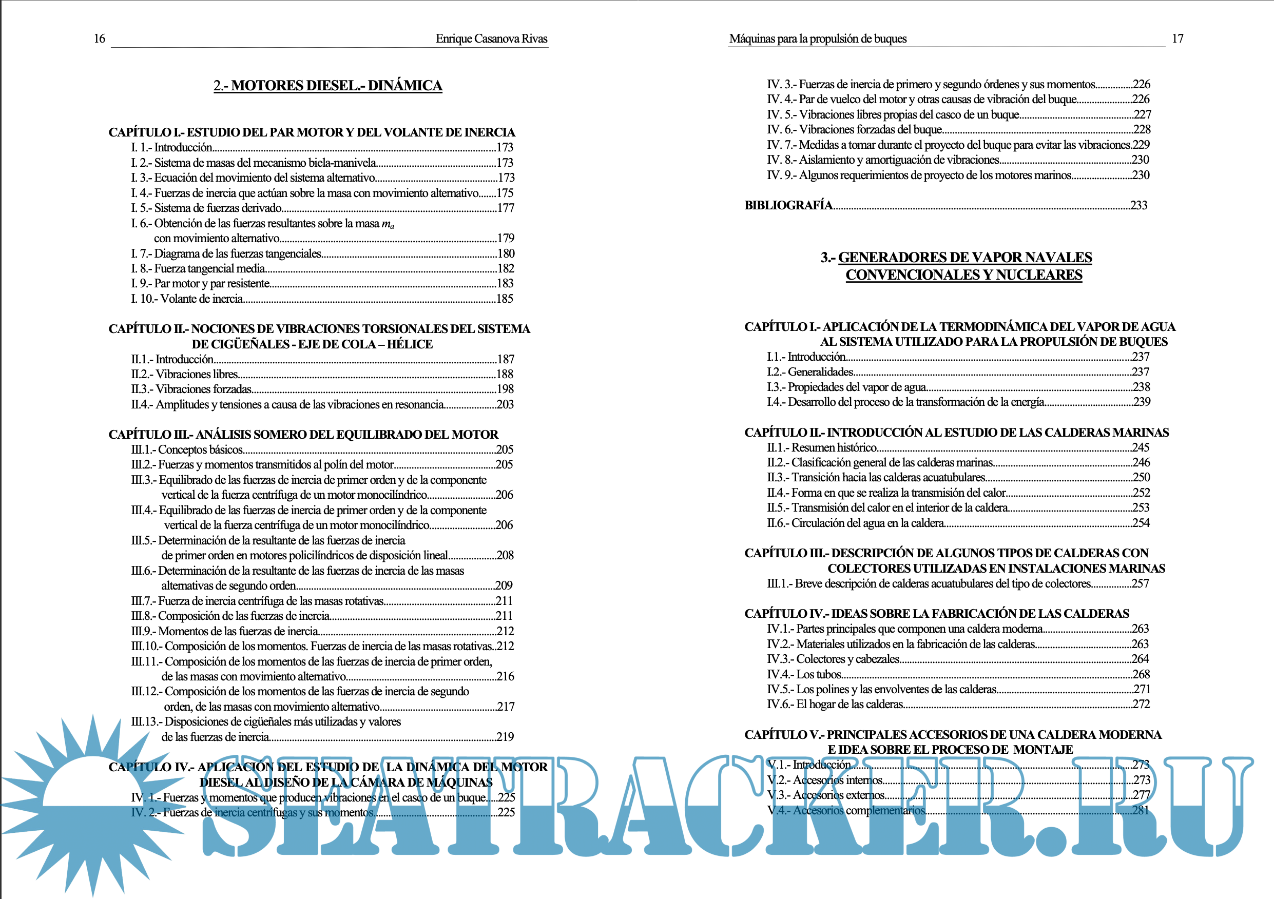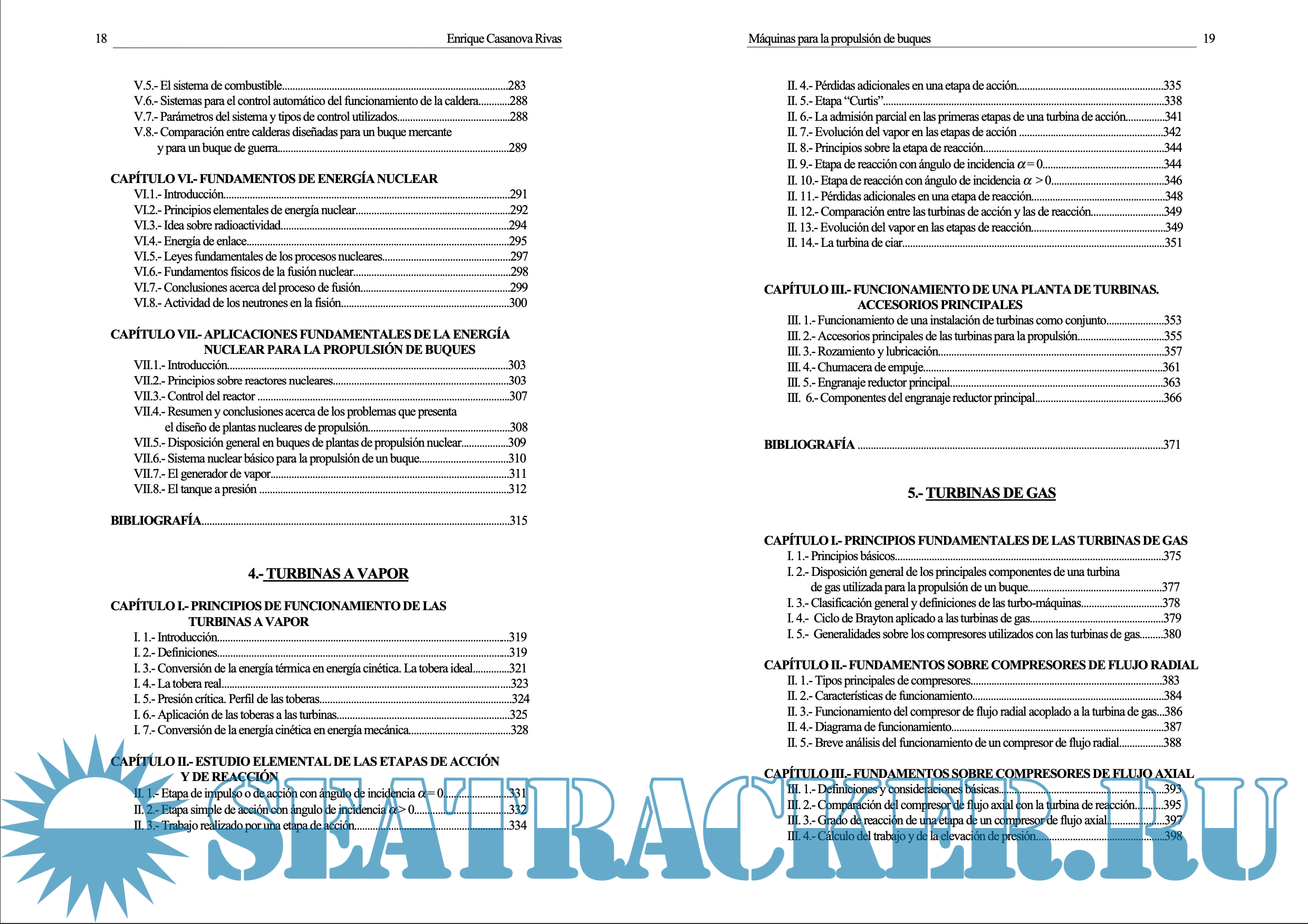 This book is not just a structured publication to guide students in naval engineering, technical engineering, or higher marine schools, because because of their conceptual clarity and meticulous analysis (description of the main vessel propulsion systems and study of their thermodynamic and cinematic behaviour: diesel engines, conventional and nuclear steam generators, steam and gas turbines and electrical propulsion systems), it is also a reference pillar for professionals in the sector.