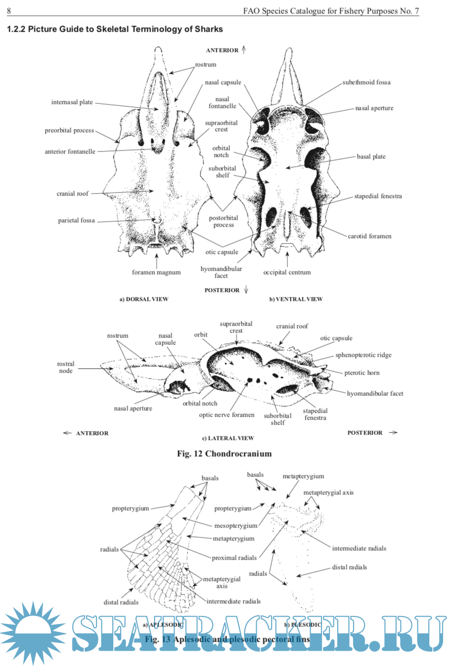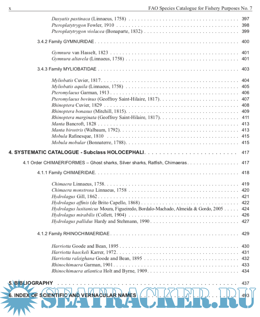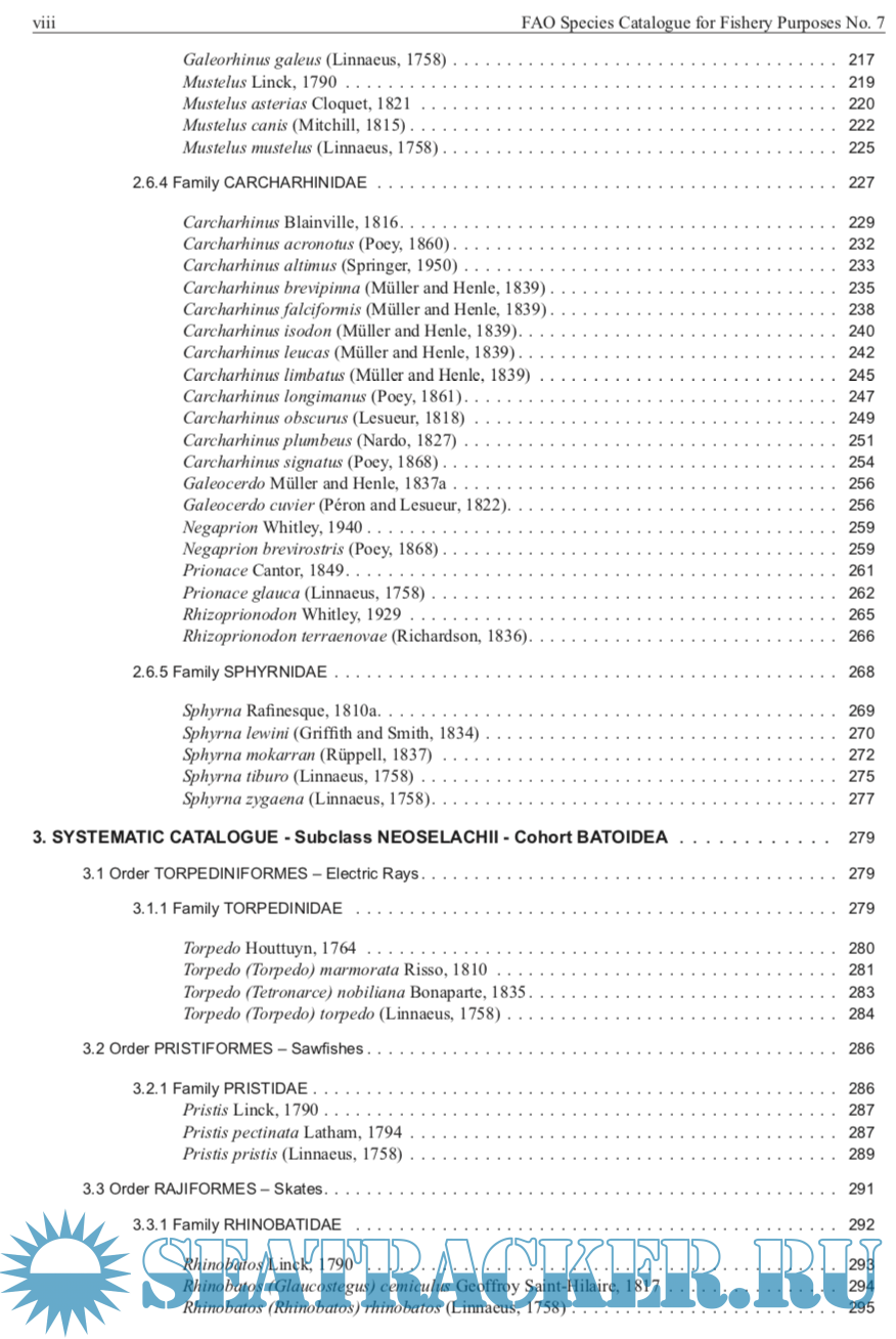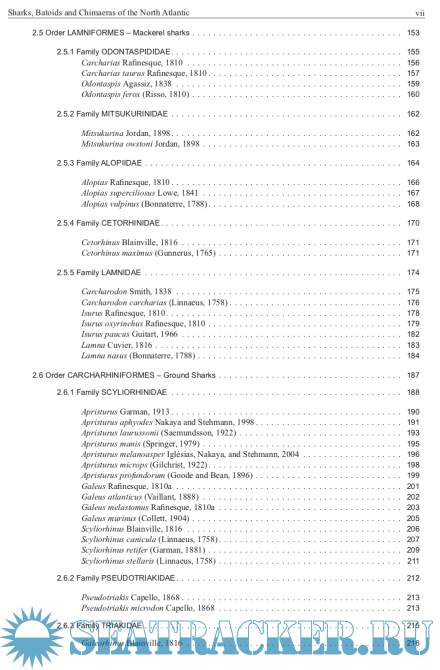 Description: This catalogue covers all the described species of living sharks, batoids, and chimaeras found in the North Atlantic, FAO Areas 21 and 27. The catalogue is intended to be a comprehensive review of the shark-like fishes of the North Atlantic in a form accessible to fisheries workers as well as researchers on shark systematics, biodiversity, distribution, and general biology. It also caters to other researchers that need comparative information on sharks, and their relatives, and to people who encounter sharks during the course of work or play in the sea, or in freshwater, and the general public. It includes species of major, moderate, minor, and minimal importance to fisheries as well as those of doubtful or potential use to fisheries. It also covers those species that have a research, recreational, educational, and aesthetic importance, as well as those species that occasionally bite and threaten people in the water and the far more numerous species that are ‘bitten’ and threatened by people through exploitation and habitat modification.
