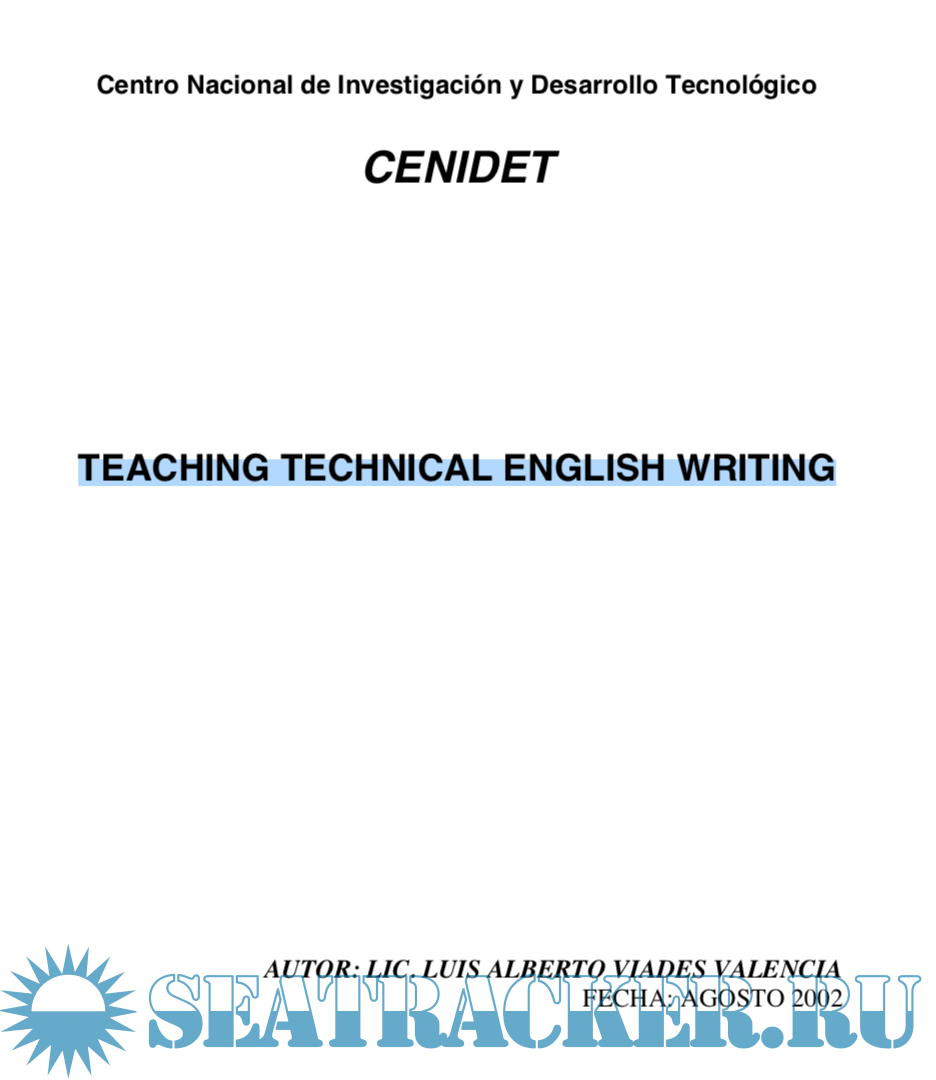 Year: 2002 Language: english Author: Luis Alberto Viades Valencia Genre: Textbook Publisher: CENIDET Edition: 1 Format: PDF Quality: eBook Pages count: 132 Description: The book Teaching Technical English Writing (TTEW) is a long time project that has finally become a reality and will eventually be published in the summer of 2002 sponsored by the DGIT and by CENIDET where I have been working as Head of the English Department since 1988. In most respects TTEW is a response to the following situation. The majority of students who enter CENIDET for post-graduate studies, come from technological institutes modelled on the lack of English instruction during the five years of their first degree. Their previous years of preparatory English instruction were based on structural/behaviorist methodological models. What learners are tought at this level is not a communicative knowledge of English language use, but knowledge of how the syntactic and lexical rules of English operate. The language system is taught, suitably contextualised by means of techniques based on habit formation theory of learning and a structuralist description of English.What students succeed in learning in this way is what is necessary in order to pass examinations. At a post-graduate level they are generally highly conscious of the use they intend to put the foreign language. That use is associated with an occupational, vocational, academic or professional requirement.