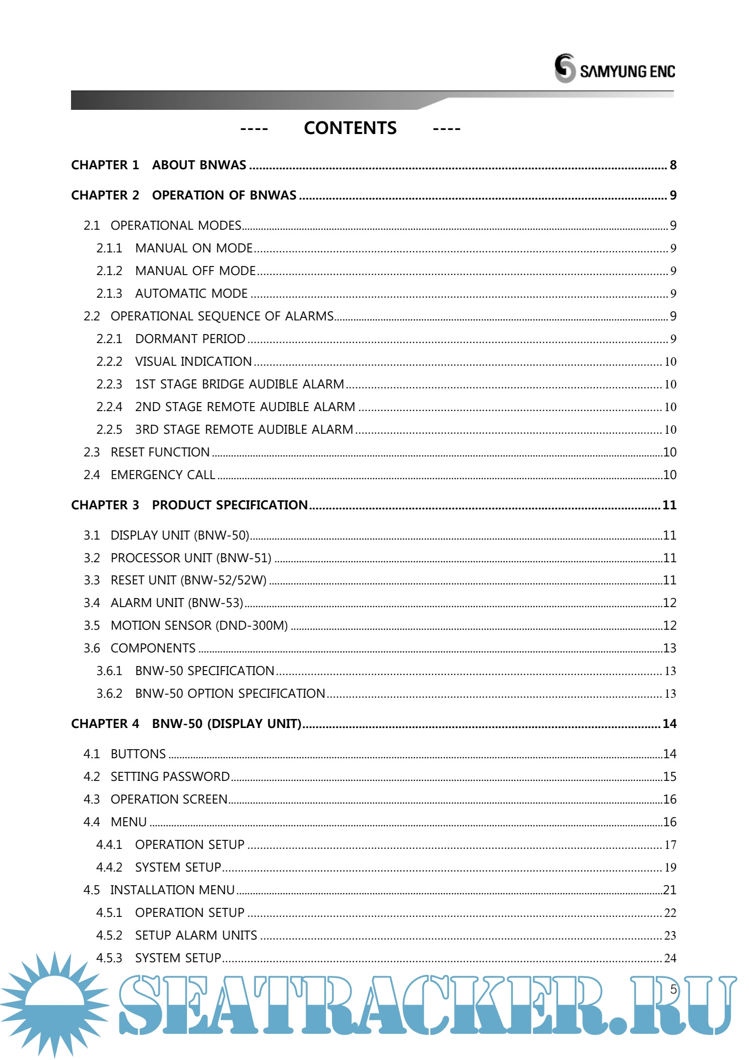 Samyung BNW-50 Bridge Navigational Watch Alarm System User Manual