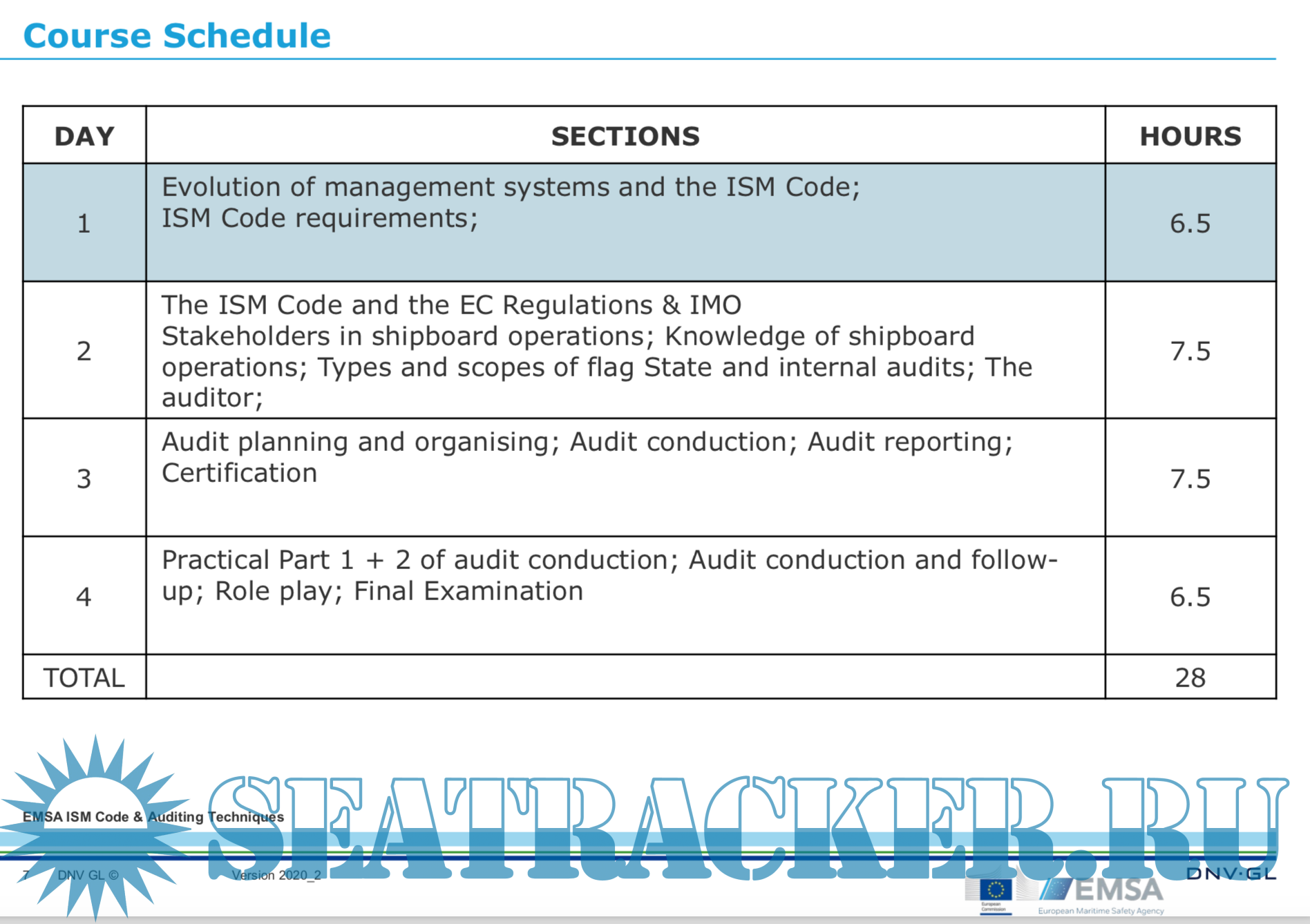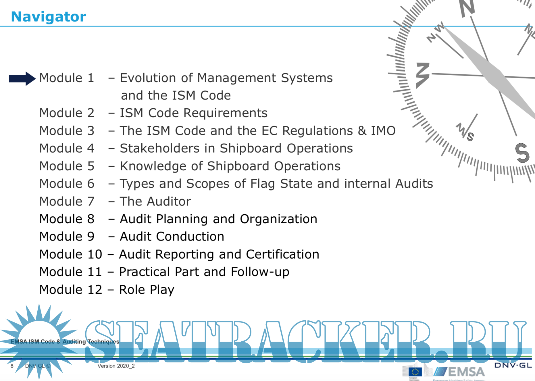 • To become more familiar with different types of flag State audits and internal audits.
