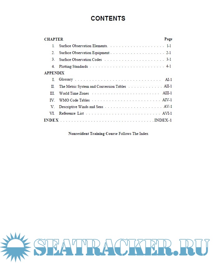 The book contains basic procedures that are involved with conducting surface weather observations. Surface observation elements. A description of primary and backup observation equipment that is used aboard ships and at shore stations. How to record and encode surface METAR observations using WMO and NAVMETOCCOM guidelines.