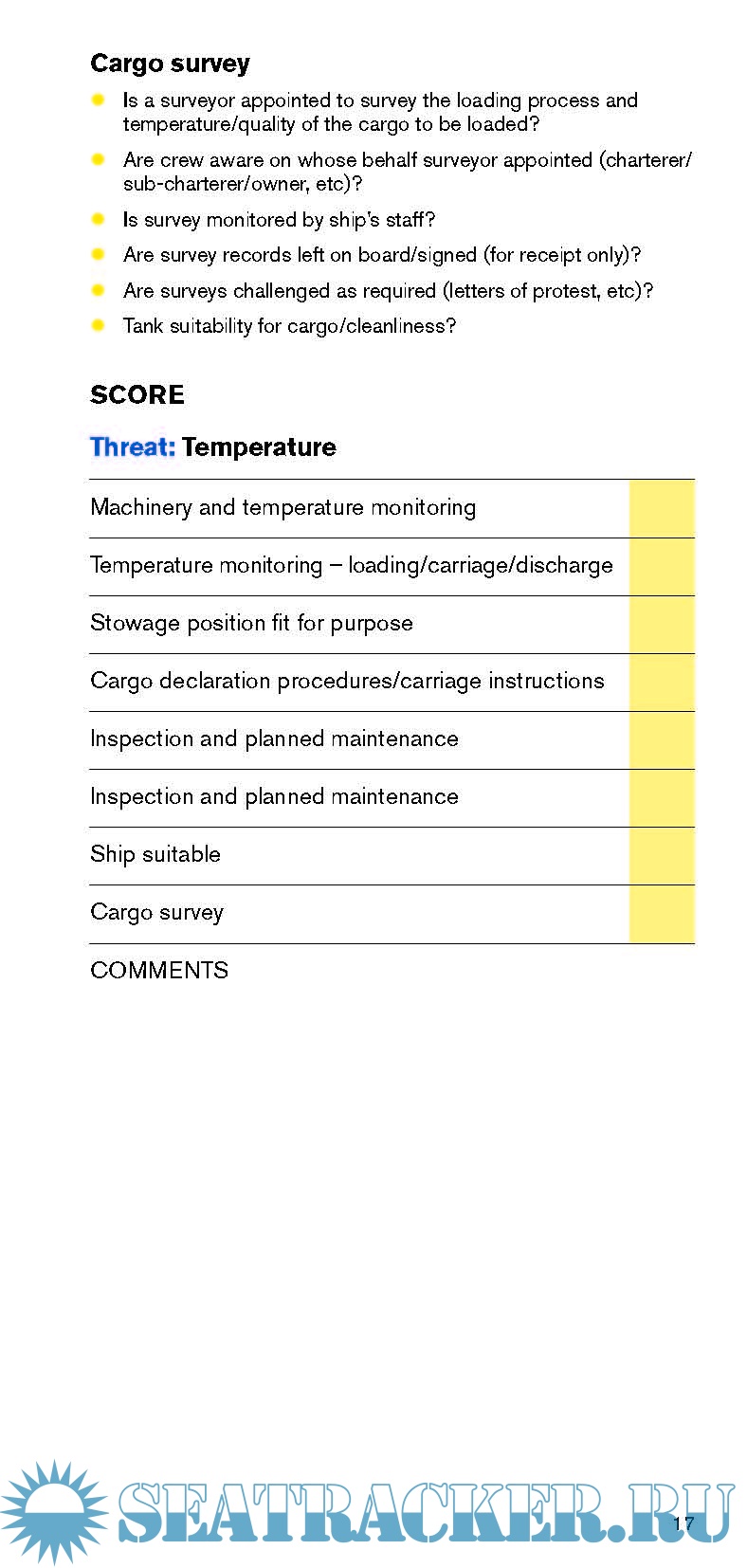 It will allow you to carry out a similar check on the Threats and Controls and make sure the vessel has a good risk profile.