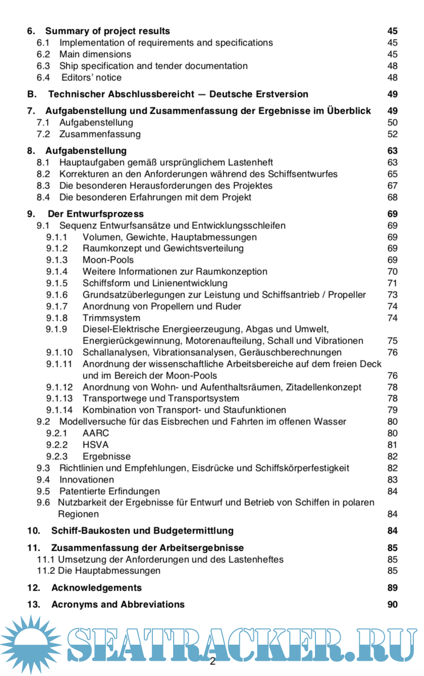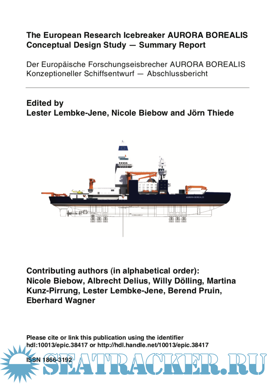 Description: Dedicated research vessels that are capable to operate during all seasons of the year and under unfavourable weather conditions in the central Arctic Ocean and in the Southern Ocean are required to fulfil the new needs of polar ocean research for all marine disciplines. Today, no available research vessel has these required capabilities. Thus, the initiative was taken to develop a novel and dedicated research icebreaker with technical capabilities hitherto unrealised, which will enable the vessel to autonomously operate in the Arctic Ocean even during the severest ice conditions in the deep winter serving all marine disci- plines of polar research including deep-sea drilling: The AURORA BOREALIS. The technical conceptual design of this research icebreaker with scientific deep- sea drilling capability AURORA BOREALIS is summarised in this report.