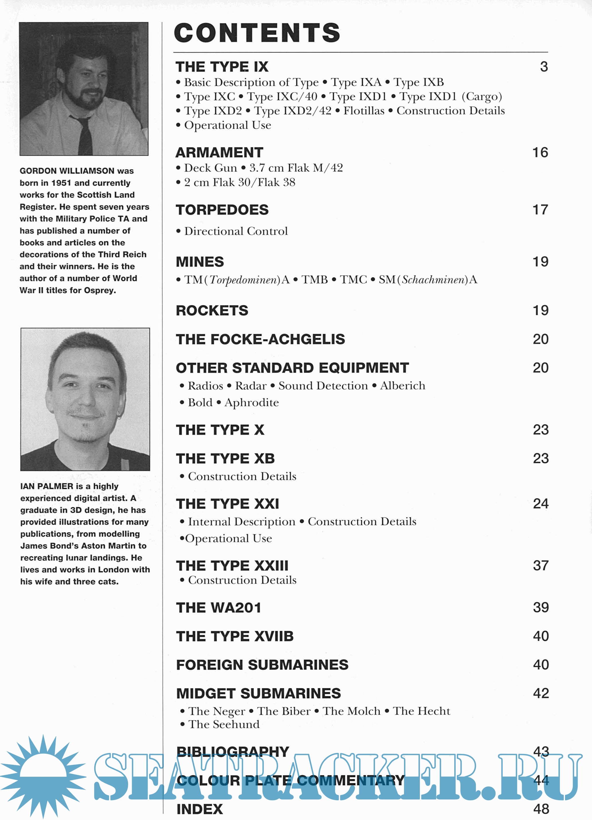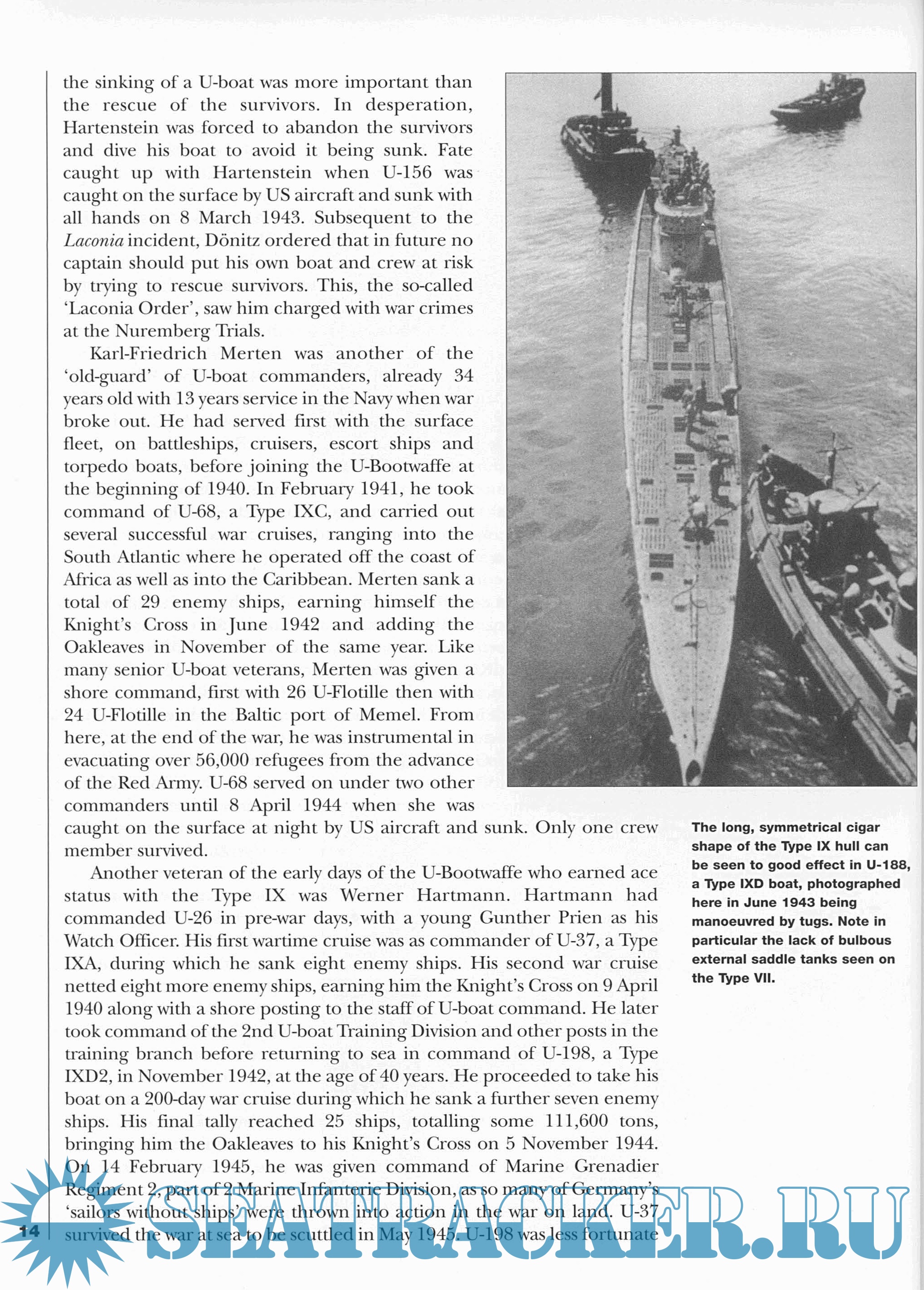 Year: 2002 Language: english Author: Gordon Williamson, Ian Palmer Genre: History Publisher: Osprey Publishing ISBN: 184176364 0 Format: PDF Quality: OCR without errors Pages count: 51 Description: This title follows on from Volume 1, and charts the continuing development of the U-boat in German service. This includes the development of the Type IX as a long range 'cruiser' intended for solo operations in distant waters. Also covered is the revolutionary Type XXI, conceived of in 1942 and launched in April 1944, the first true submarine rather than submersible, whose arrival was just too late to influence the war. Other vessels included are the Type XXIII, small and armed with only two torpedoes but technically highly advanced, and the Type X minelayers. These were rarely used in their intended role and were more often used as supply boats. Additional info: Volume 2 of 2