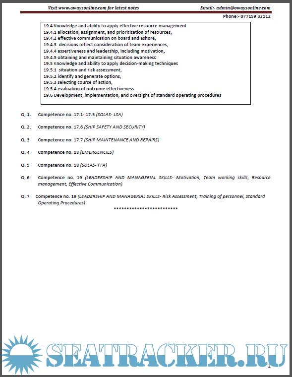 Description: Function - Controlling the operation of ship and care of persons onboard. Paper - Ship Safety, Emergencies, Maintenance and Managerial Skills