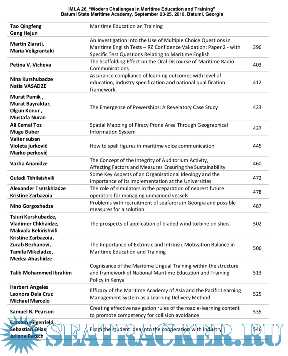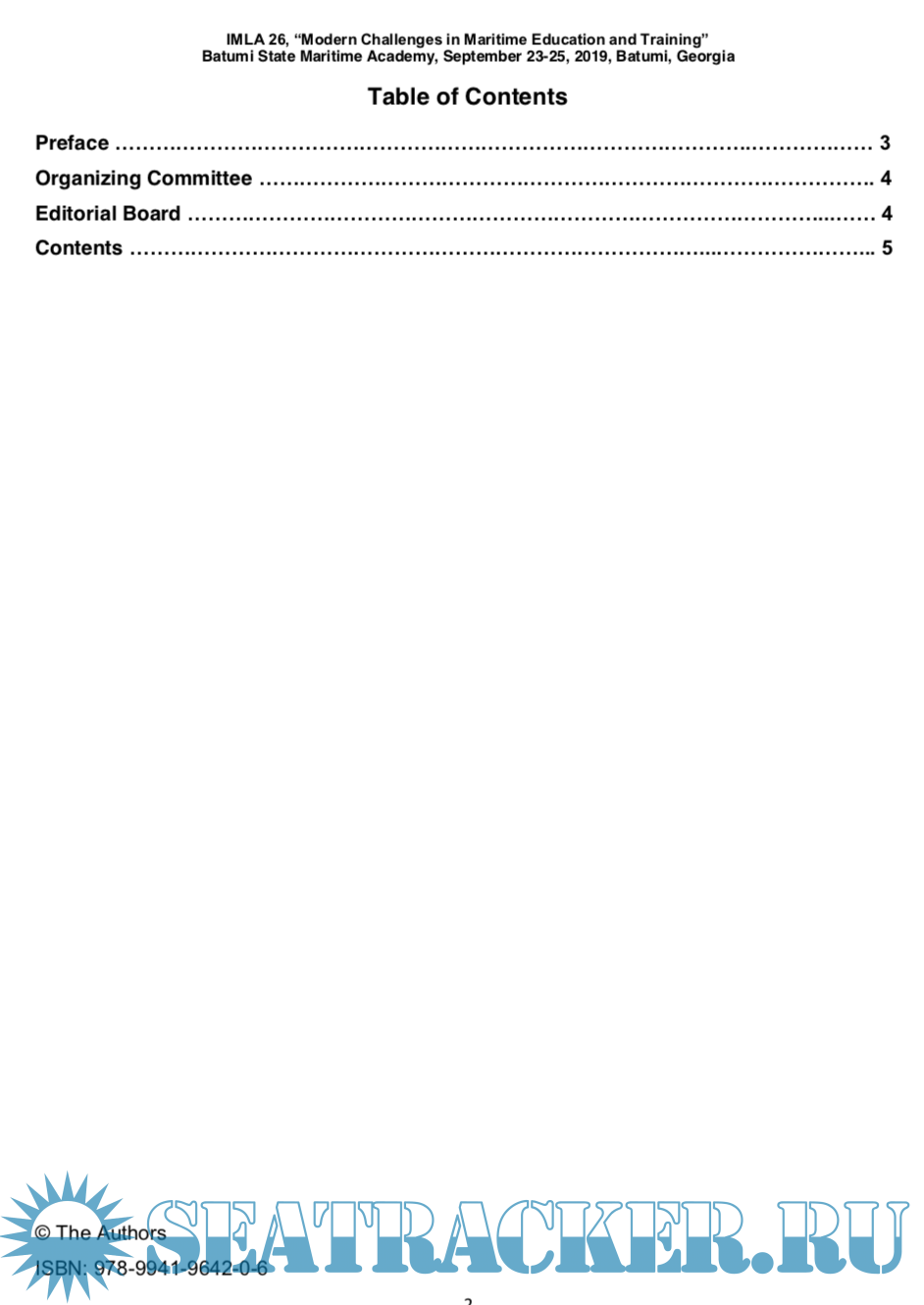Description: The book contains the Proceedings of the The 26th International Maritime Lecturers Association Conference (IMLA 26), held at Legal Entity of Public Law - Teaching University - Batumi State Maritime Academy, Batumi, Georgia, September 23-25, 2019.