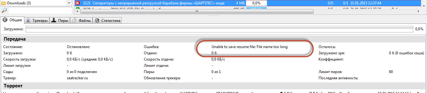 Сервер не может сидировать файлы с названием длинной в 255 байт...