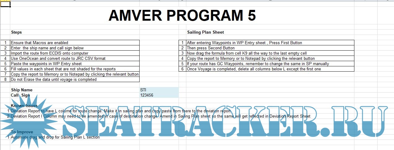 AMVER Excel Sheet