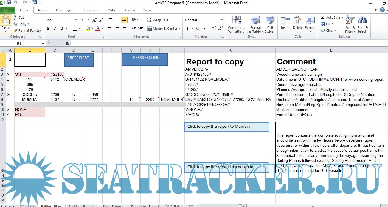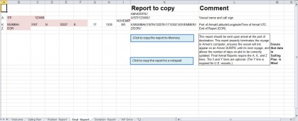 Description: This is a program I made to make AMVER reporting easier. Just export the route from ECDIS into csv fromat , paste it in excel , add a few necessary details and press the button. Thats all you have to do. This is second version of a program I made earlier. I have changed few things on it. I hope now the procedure becomes much easier.