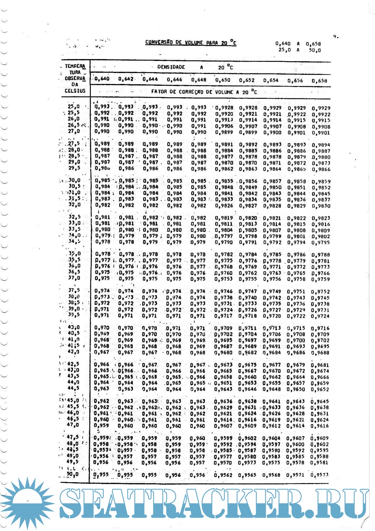ANP Conversation Petroleum Measurement Tables for BRAZIL on 20 Deg C [19**, PDF]