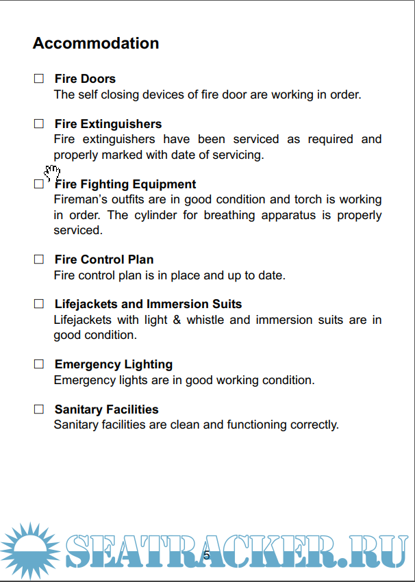 Description: The items identified in this checklist are concerning with the deficiencies which resulted in ship detention.