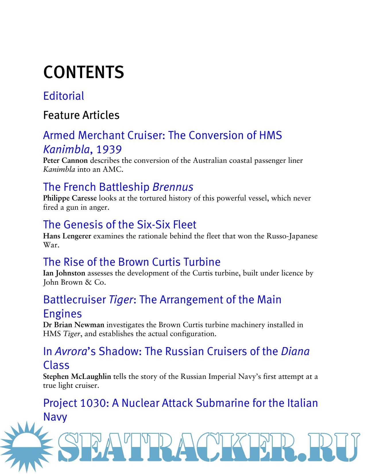 In the 2019 edition of this celebrated title, articles include Hans Lengerer's exploration of the genesis of the Six-Six Fleet, Michele Cosentino's look at Project 1030, Italy's attempt to create a torpedo-armed attack and ballistic missile submarines, and A D Baker III's drawing feature on the USS Lebanon. Detailed and accurate information is the keynote of all the articles, which are fully supported by plans, data tables and stunning photographs.
