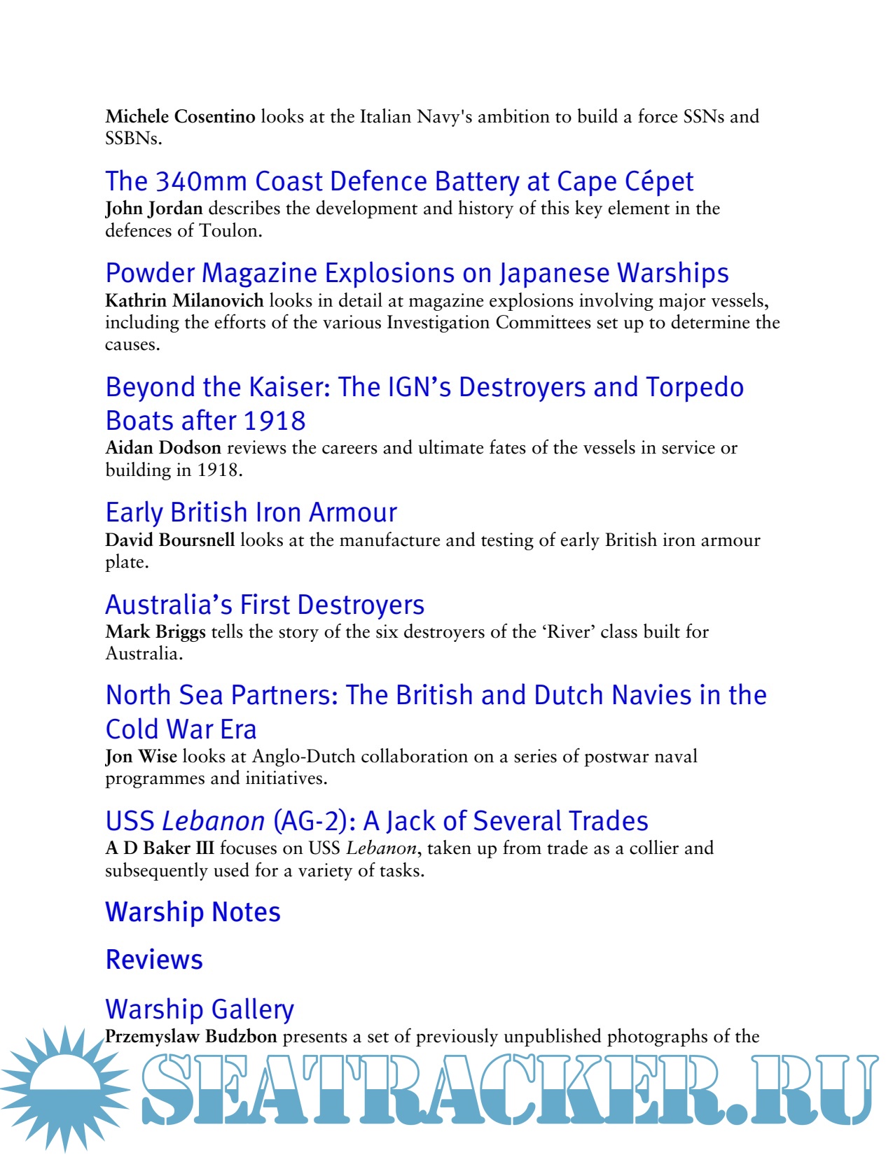 Additional info: John Jordan is a former language teacher. He is the author of two major books on the Soviet Navy, and more recently co-authored French Battleships 1922-56 (Seaforth, 2009) with Robert Dumas. He has been associated with Warship from its earliest beginnings and took over the editorship full time in 2004. He lives in the UK.
