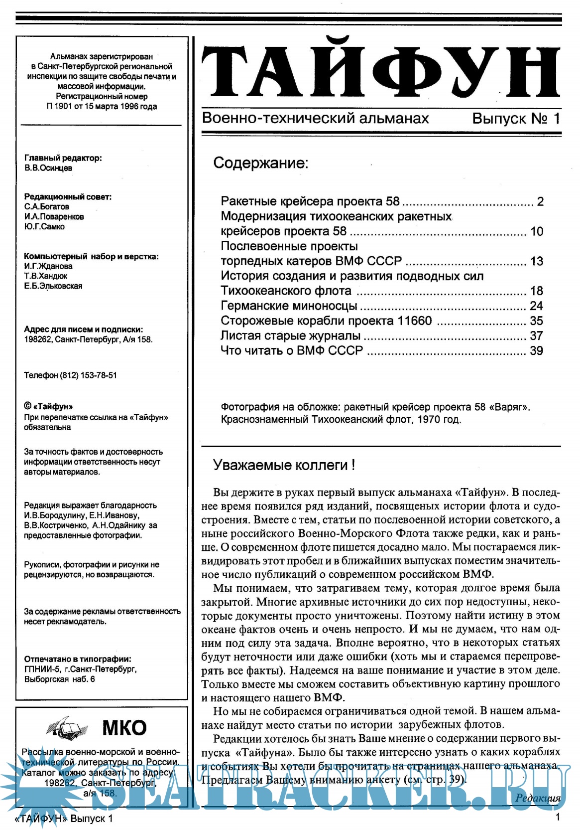 Описание: Военно-технический альманах «Тайфун» — периодическое издание о прошлом, настоящем и будущем Военно-морского флота. Он издается в Санкт-Петербурге.