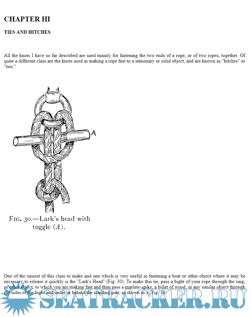 A practical treatise giving complete and simple directions for making all the most useful and ornamental knots in common use, with chapters on splicing, pointing, seizing, serving, lashings, shortening and grommets. Illustrated with 156 original cuts showing how each knot, tie or splice is formed, and its appearance when complete.