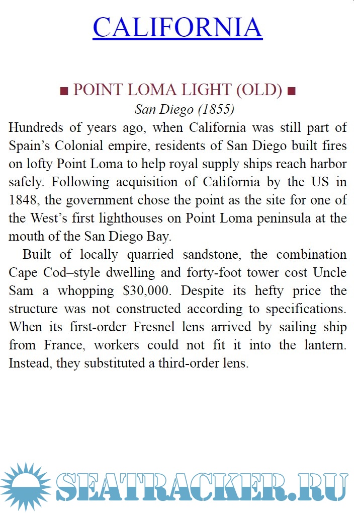 Description: For more than two centuries, in United States, lighthouses have helped sailors find their way through treacherous waters, guiding them home or taking them safely through passages on their way to adventure. These historic towers and houses form a sparkling chain of lights along our coasts, a reminder of the past echoing with adventure and mystery, a lure for travelers looking for a glimpse into a romantic past.