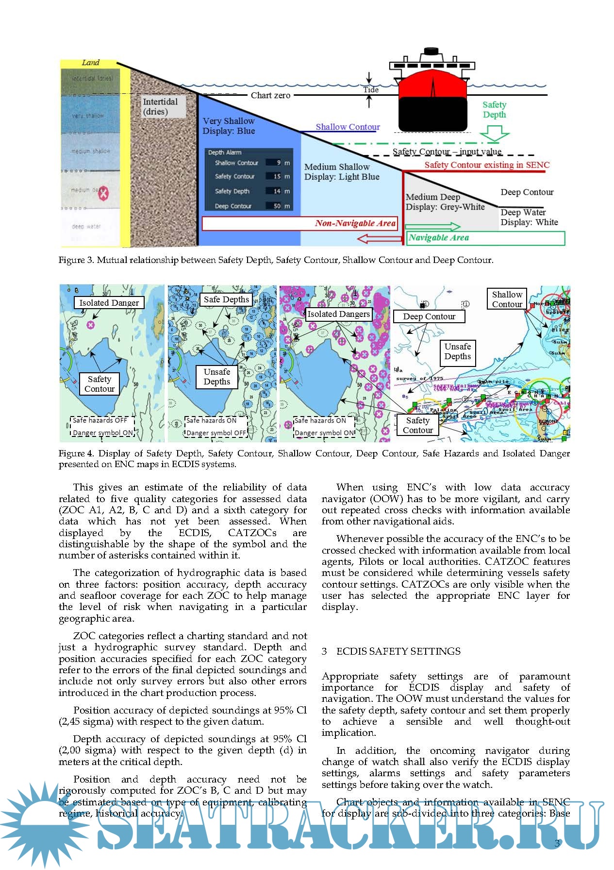 Description: The purpose and scope of this paper is to describe the factors to consider when determining Electronic Chart Display and Information System (ECDIS) limitation, data reliability, alarm management and ship’s safety parameter settings. For the optimum situational awareness, navigators must always recognize the level of display for objects presented when using ECDIS. The values for the safety depth and safety contour