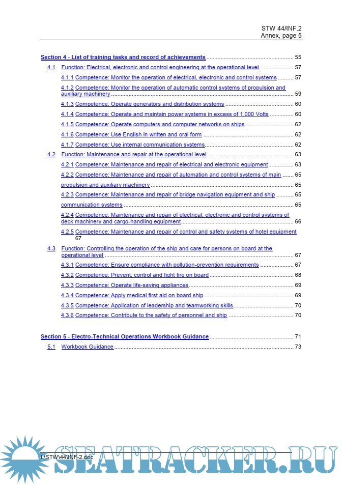 During this training electrical cadet gains professional skills and experience necessary in the work asaElectro-Technical Officer. On board training skills gained according to the programme included inthe TRB fulfil the minimum requirements for certification as an Electro-Technical Officer.
