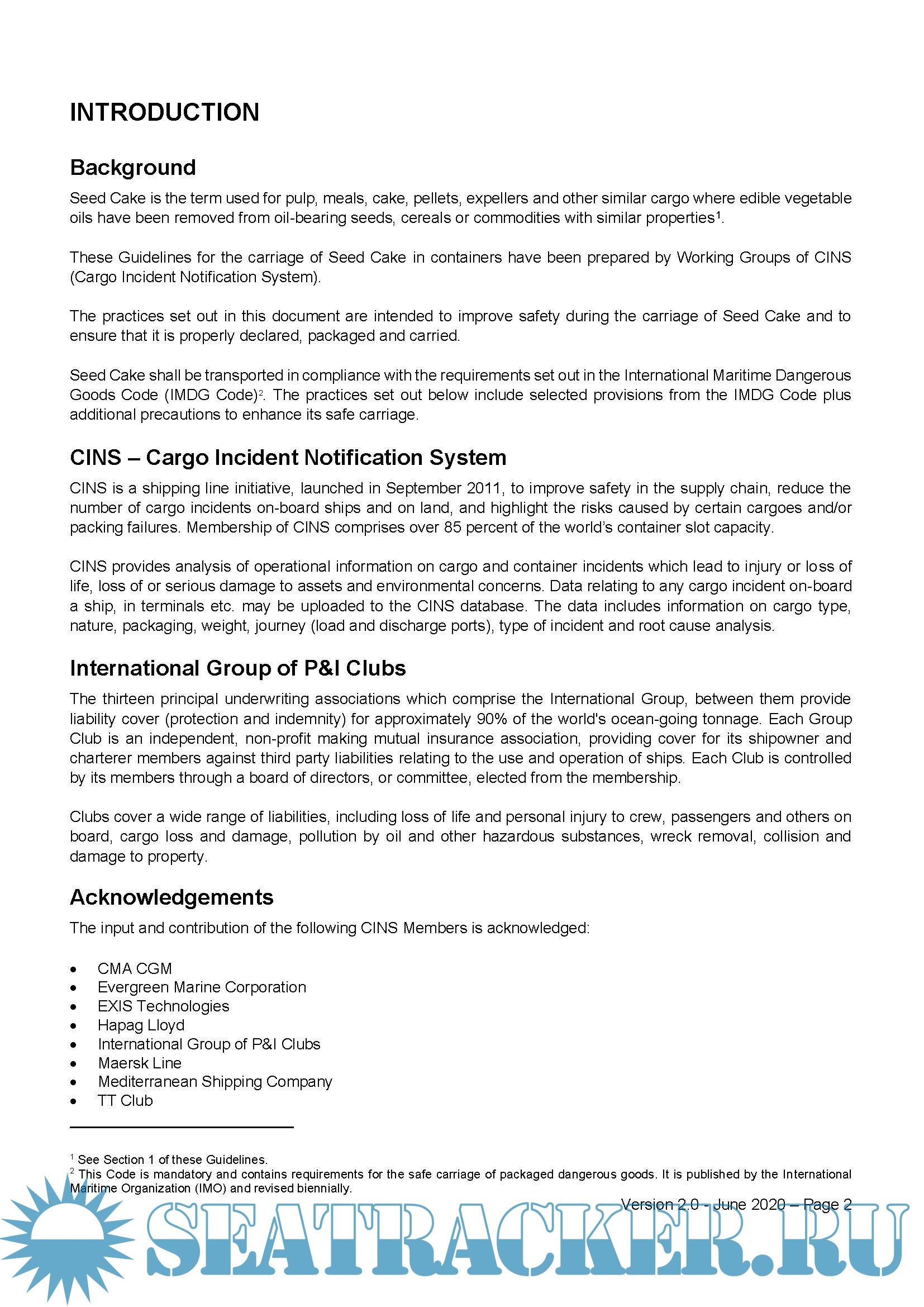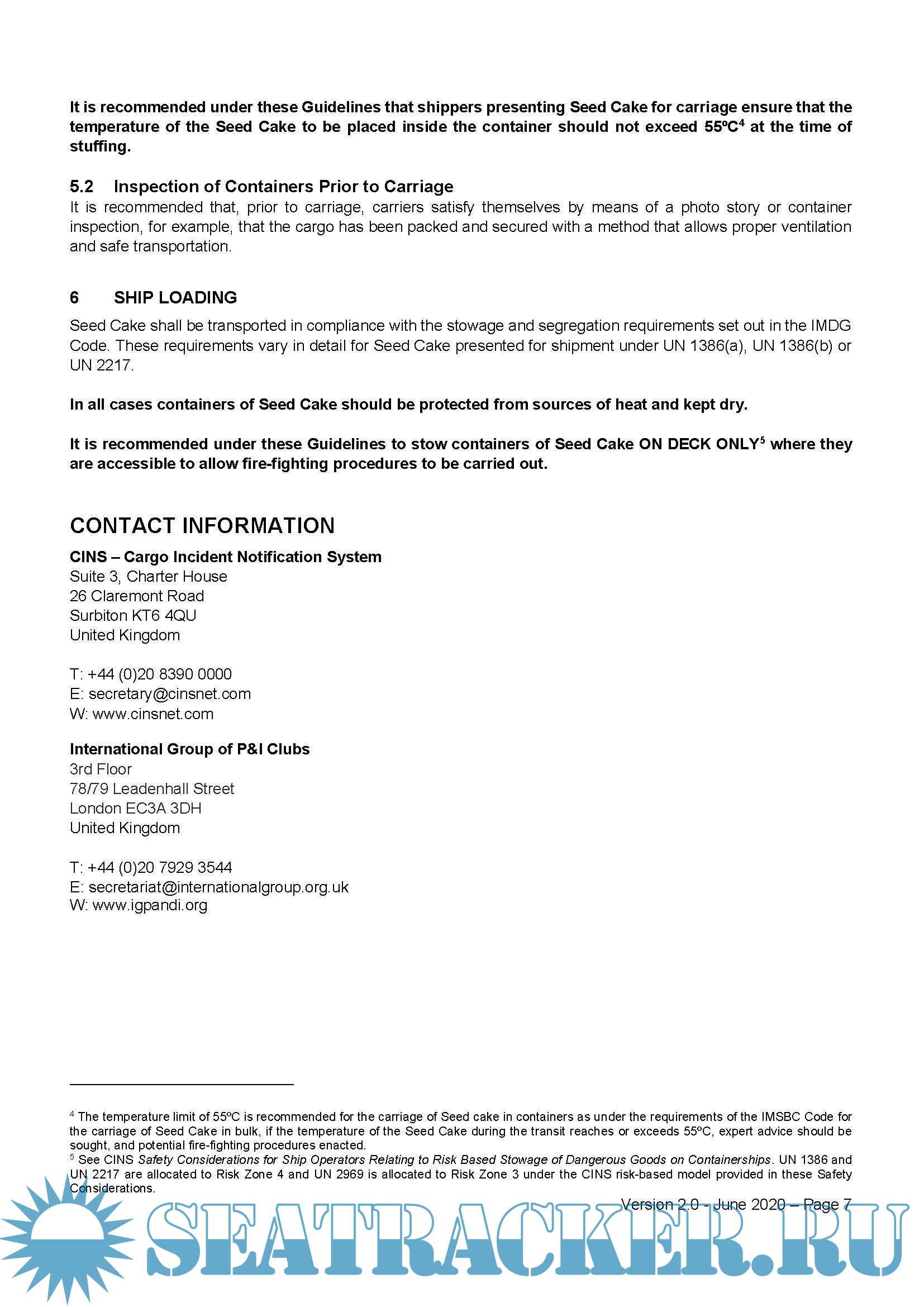 These Guidelines for the carriage of Seed Cake in containers have been prepared by Working Groups of CINS (Cargo Incident Notification System).