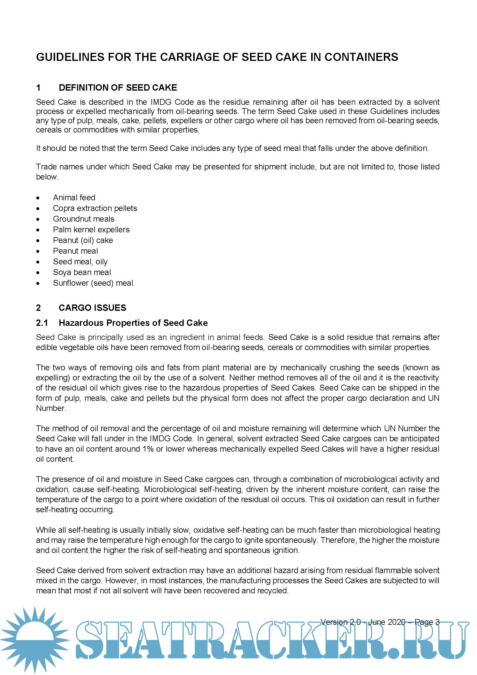 Guidelines for the Carriage of Seed Cake (including Seed Meal) in Containers, Version 2.0