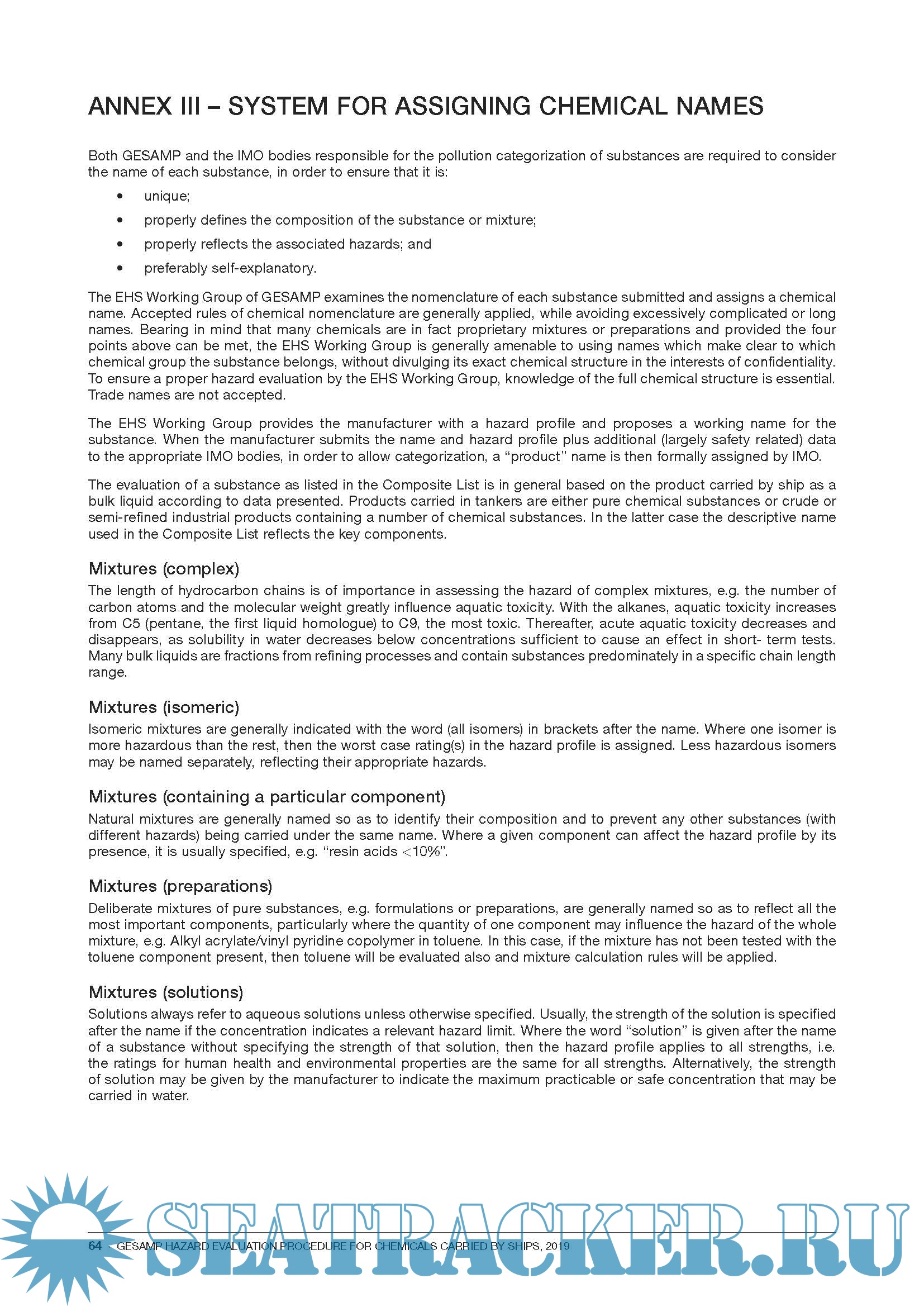 GESAMP Hazard Evaluation Procedure for Chemicals Carried by Ships, 2019 GESAMP Working Group 1