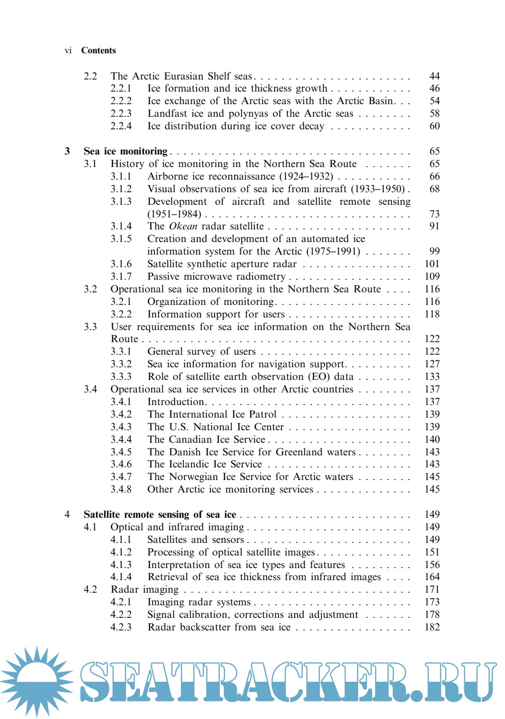 Year: 2007 Language: english Author: Johannessen O.M. at all Genre: Reference book Publisher: Springer-Verlag Berlin Heidelberg ISBN: 978-3-540-48840-8 Format: PDF Quality: Scanned pages Pages count: 563 Description: Remote Sensing of Sea Ice in the Northern Sea Route: Studies and Applications Professor Ola M. Johannessen, Dr. Vitaly Yu. Alexandrov, Professor Ivan Ye. Frolov, Professor Stein Sandven, Mr. Lasse H. Pettersson, Dr. Leonid P. Bobylev, Mr. Kjell Kloster, Dr. Vladimir G. Smirnov, Dr. Yevgeny U. Mironov, Mr. Nikolay G. Babich (auth.) Remote Sensing of Sea Ice in the Northern Sea Route: Studies and Applications initially provides a history of the Northern Sea Route as an important strategic transport route for supporting the northern regions of Russia and cargo transportation between Europe and the Northern Pacific Basin. The authors then describe sea ice conditions in the Eurasian Arctic Seas and, using microwave satellite data, provide a detailed analysis of difficult sea ice conditions. Remote sensing techniques and the basic principles of SAR image formation are described, as well as the major satellite radar systems used for ice studies in the Arctic. The authors take a good look at the use of sensing equipment in experiments, including the ICE WATCH project used for monitoring the Northern Sea Route. The possibilities of using SAR remote sensing for ice navigation in the Northern Sea Route is also detailed, analysing techniques of automatic image processing and interpretation. A study is provided of regional drifting ice, fast ice and river ice in the coastal areas of the Arctic Seas. The book concludes with a review of the practical experience using SAR images for supporting navigation and offshore industrial activity, based on a series of experiments conducted with the Murmansk Shipping Company on board nuclear icebreakers.