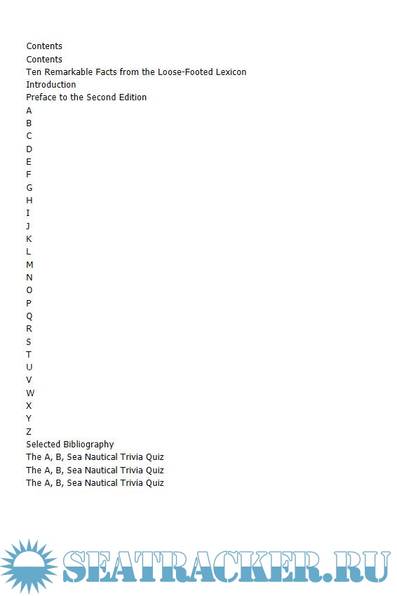 Description: A, B, Sea is an entertaining, comprehensive guide to the language and lore of 21st-century seafarers. This playful mariner’s glossary of nautical terms includes definitions for and cross-references to everything from aft to zenith, brass monkey to tuna tower. This second edition includes many new entries, some purely from the swashbuckler vernacular, and others for serious sailors. Packed with practical advice, this is a dictionary with a difference: many words are illustrated by passages from classic books of the sea, others by the author's experiences aboard an American schooner with a European engine and two boxes of tools. Sample entries from this informative and entertaining dictionary include: