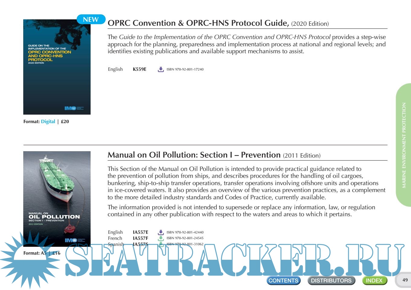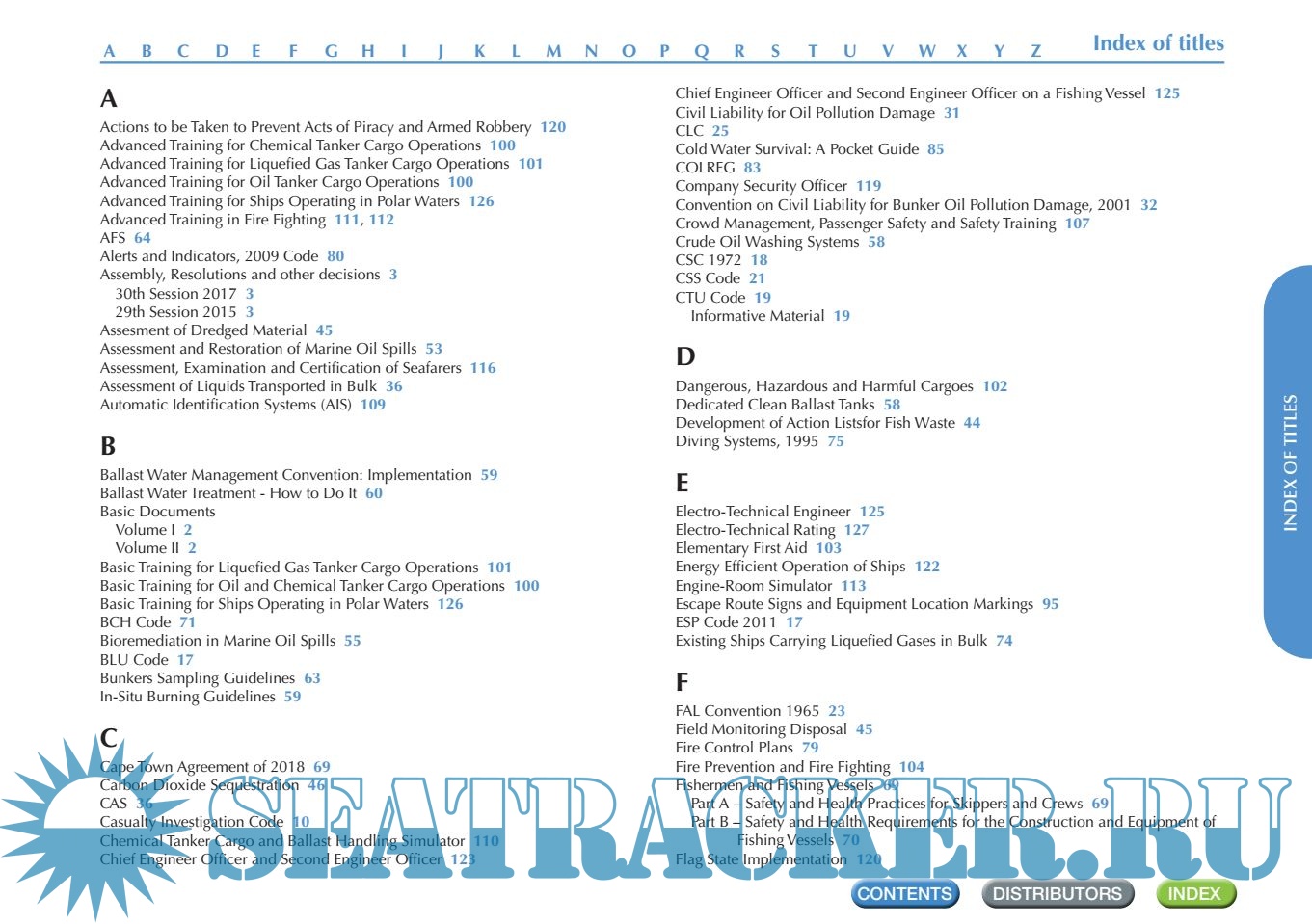 Description: IMO Publishing’s activities provide the world’s maritime community with numerous texts (conventions, codes, regulations, recommendations, guidelines, etc.) prepared by the Organization. There are over 200 titles available in English. Many are translated into Arabic, Chinese, French, Russian and Spanish. IMO Publishing also produces digital products, namely e-books, e-readers, electronic downloads, CDs and internet subscriptions. The dissemination of this information, including attendance at maritime exhibitions worldwide and regular e-newsletters to interested parties, plays an important role in promoting shipping as a safe, secure, efficient and environmentally-friendly method of transporting goods around the globe.