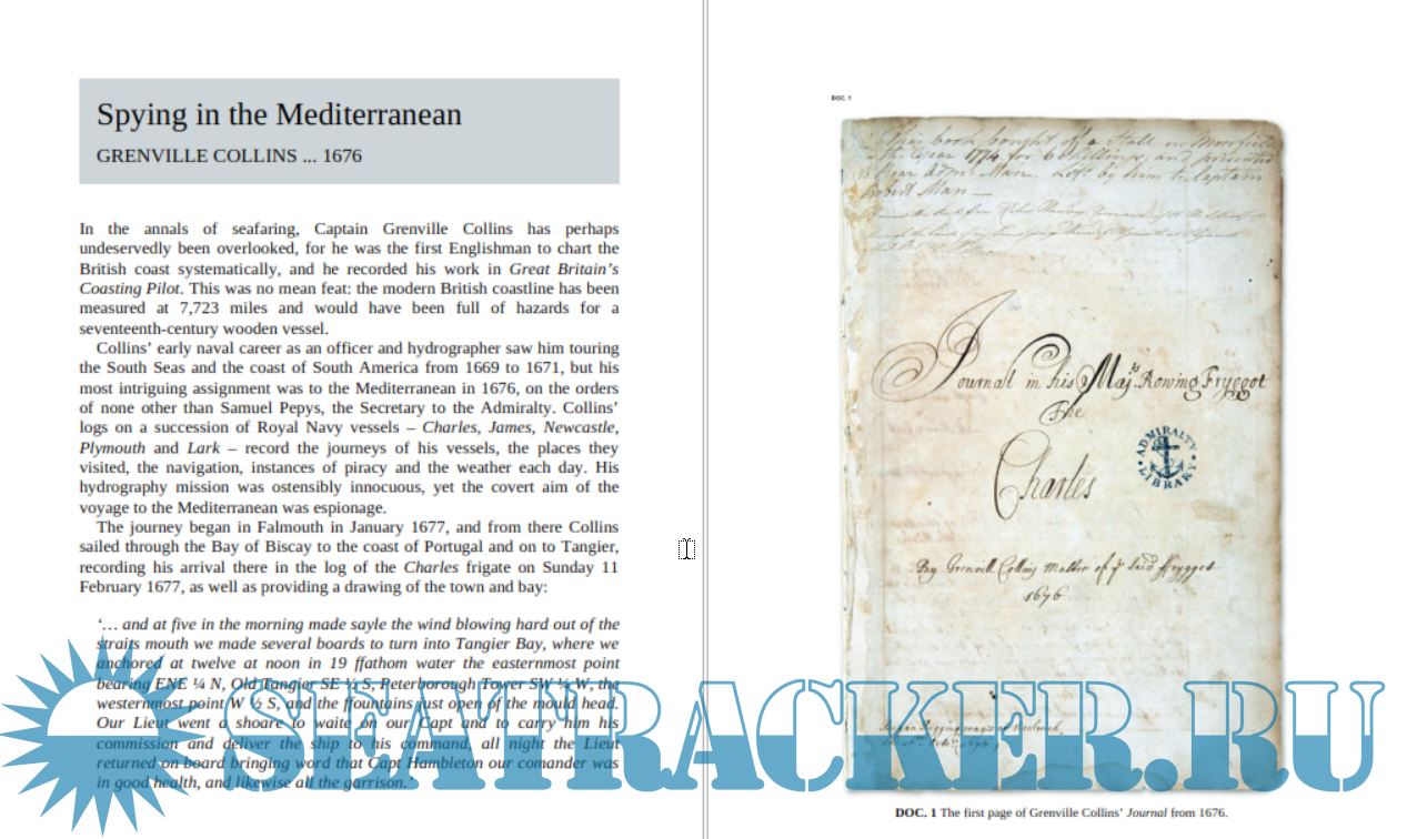 Year: 2017 Language: english Author: The National Archives Genre: History Publisher: Adlard Coles Nautical ISBN: 9781472948663, 9781472948670 Format: PDF Quality: eBook Pages count: 322 Description: For centuries, ships' commanders kept journals that recorded their missions. These included voyages of discovery to unknown lands, engagements in war and sea and general trade. Many of their logs, diaries and letters were lodged at The National Archives and give a vivid picture of the situations that they encountered. Entries range from Captain James Cook's notes of his discovery of the South Pacific and Australia, to logs of the great naval battles, such as Trafalgar and the Battle of the Nile. From the ships that attempted to stop piracy in the Caribbean, to the surgeons who recorded the health of the men they tended and naturalists who noted the exotic plants and animals they encountered, comes a fascinating picture of life at sea, richly illustrated with maps, drawings and facsimile documents found alongside the logs in the archives.