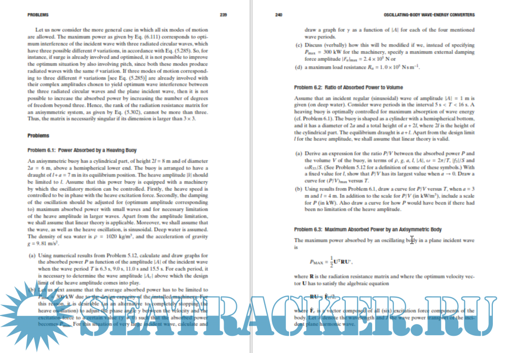 Year: 2020 Language: english Author: Johannes Falnes, Adi Kurniawan Genre: Research papers Publisher: Cambridge University Press Edition: 2nd ISBN: 1108481663,9781108481663 Format: PDF Quality: eBook Pages count: 319 Description: Understand the interaction between ocean waves and oscillating systems with this useful new edition. With a focus on linear analysis of low-amplitude waves, you are provided with a thorough understanding of wave interactions, presented to be easily accessible to non-specialist readers. Topics covered include the background mathematics of oscillations, gravity waves on water, the dynamics of wave-body interactions, and the absorption of wave energy by oscillating bodies and oscillating water columns. Featuring new content throughout, including three new chapters on oscillating-body wave energy converters, oscillating water columns and other types of wave energy converters, and wave energy converter arrays, this book is an excellent resource for students, researchers, and engineers who are new to the subject of wave energy conversion, as well as those with more experience.