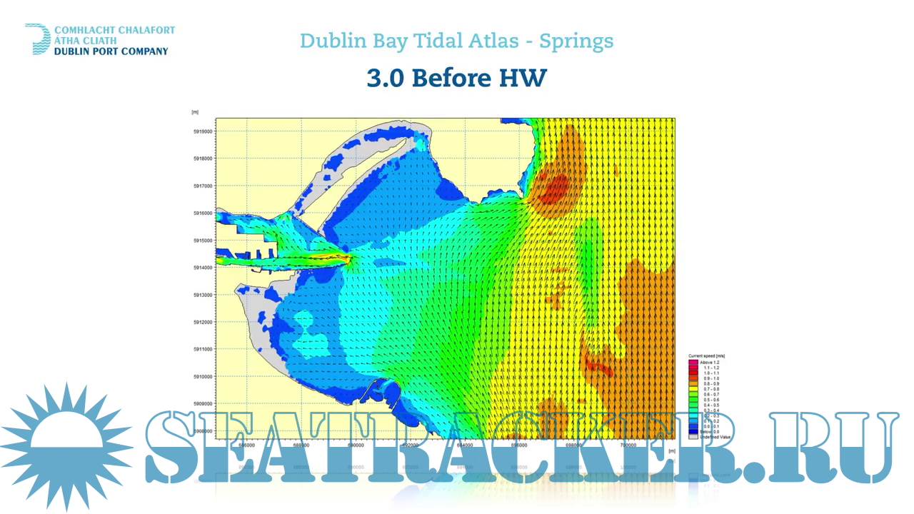 Description: There are 2 videos in this upload, showing anemic infographics of Dublin Bay (Dublin Port entrance) Taidal stream (strenght and direction) on half an hour basis, counted from High Water time. One video shows the tide during neap, another - during spring time. Videos were produced by Dublin Port Company.