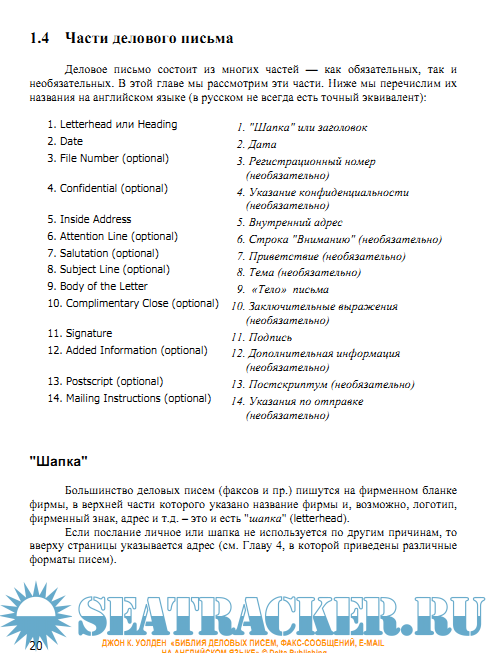 Год выпуска: 2014 Язык: Русский, Английский Автор: Джон К. Уолден Жанр: Практическое пособие Формат: PDF Качество: Изначально компьютерное (eBook) Количество страниц: 508 Описание: «Библия деловых писем» – первое русскоязычное издание всемирного англоязычного бестселлера Джона Уолдена – одного из наиболее известных авторов в области PR и технических коммуникаций. Более 15 лет он совмещает преподавательскую деятельность в Университете Нью-Йорка и пост директора в Центре Коммерческих отношений, Вашингтон, где консультирует менеджеров ведущих компаний США и помогает им повысить эффективность своей работы. Издание поможет любому менеджеру или руководителю, который по роду своей работы ведет переписку с англоязычными партнерами.