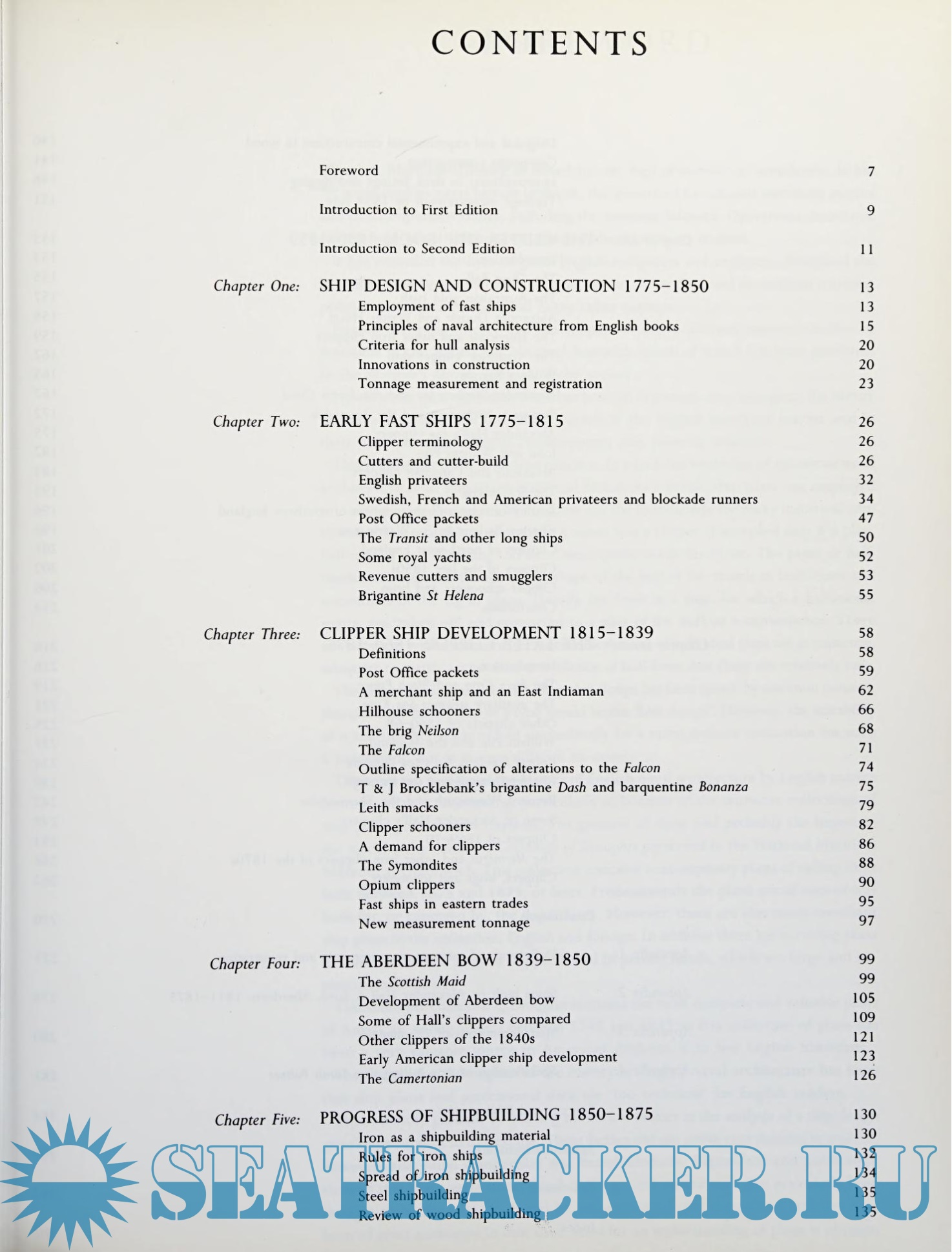 It will be found that the history of English sailing merchant ship design is outlined, showing ships of various classes — in the eighteenth and nineteenth centuries. The history of iron ship design and construction in England, the leader in this, is traced. Also, the development of composite construction is examined.