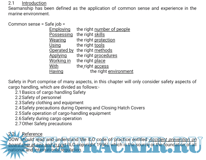 Year: 2005 Language: english Author: Mark mark Genre: Lectures Format: DOC Quality: eBook Pages count: 5 Description: Cargo handling safety on how to handle cargo onboard a vessel.