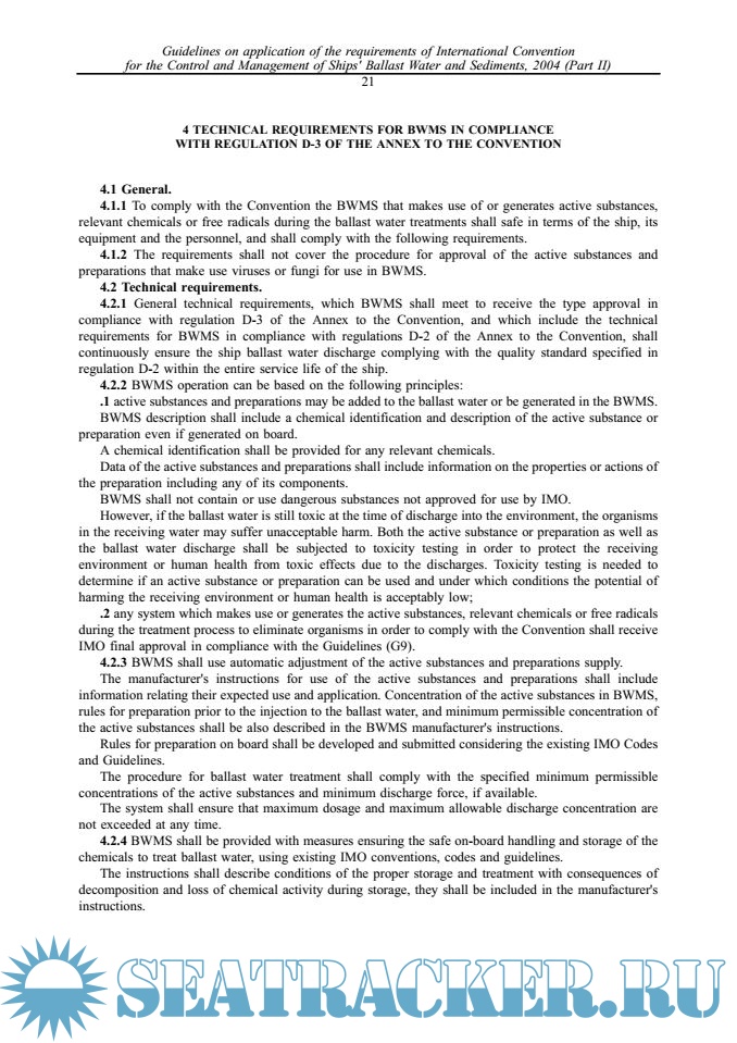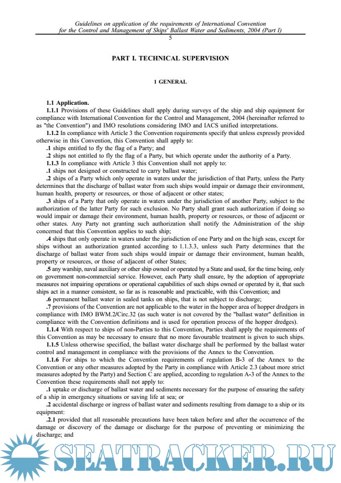 - Руководства по применению требований Международной конвенции о контроле судовых балластных вод и осадков и управлению ими 2004 года; - Guidelines on application of the requirements of International Convention for the Control and Management of Ships Ballast Water and Sediments, 2004.