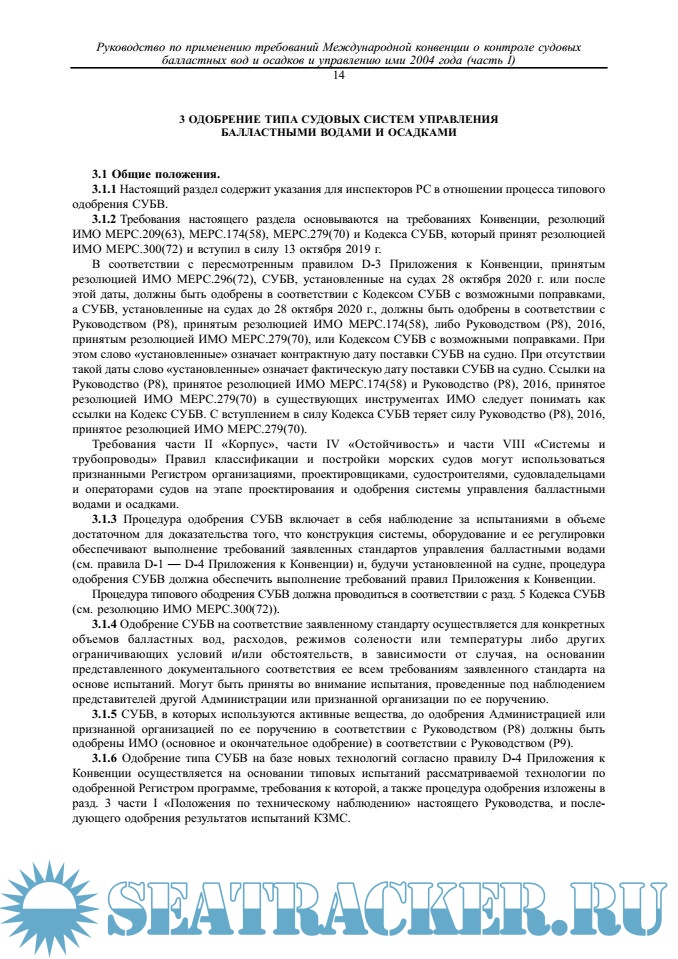 - Руководства по применению требований Международной конвенции о контроле судовых балластных вод и осадков и управлению ими 2004 года;- Guidelines on application of the requirements of International Convention for the Control and Management of Ships Ballast Water and Sediments, 2004.