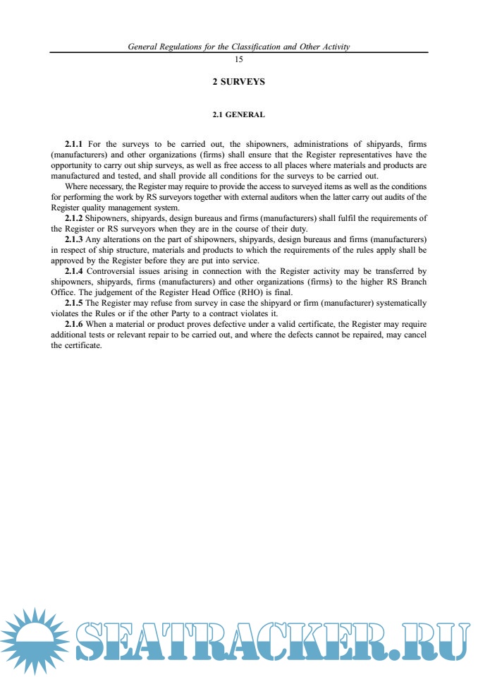 Общие положения о классификационной и иной деятельности / General Regulations for the Classification and Other Activity