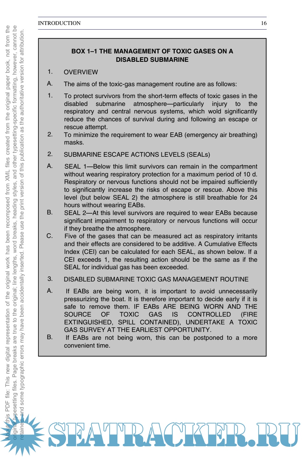 Year: 2002 Language: english Author: Subcommittee on Submarine Escape Action Levels Genre: Research papers Publisher: National Academies Press Edition: 1st ISBN: 0309082943 Format: PDF Quality: Scanned pages Pages count: 311 Description: Report from the Subcommittee on Submarine Escape Action Levels, and the Committee on Toxicology and the Board on Environmental Studies and Toxicology. Softcover.