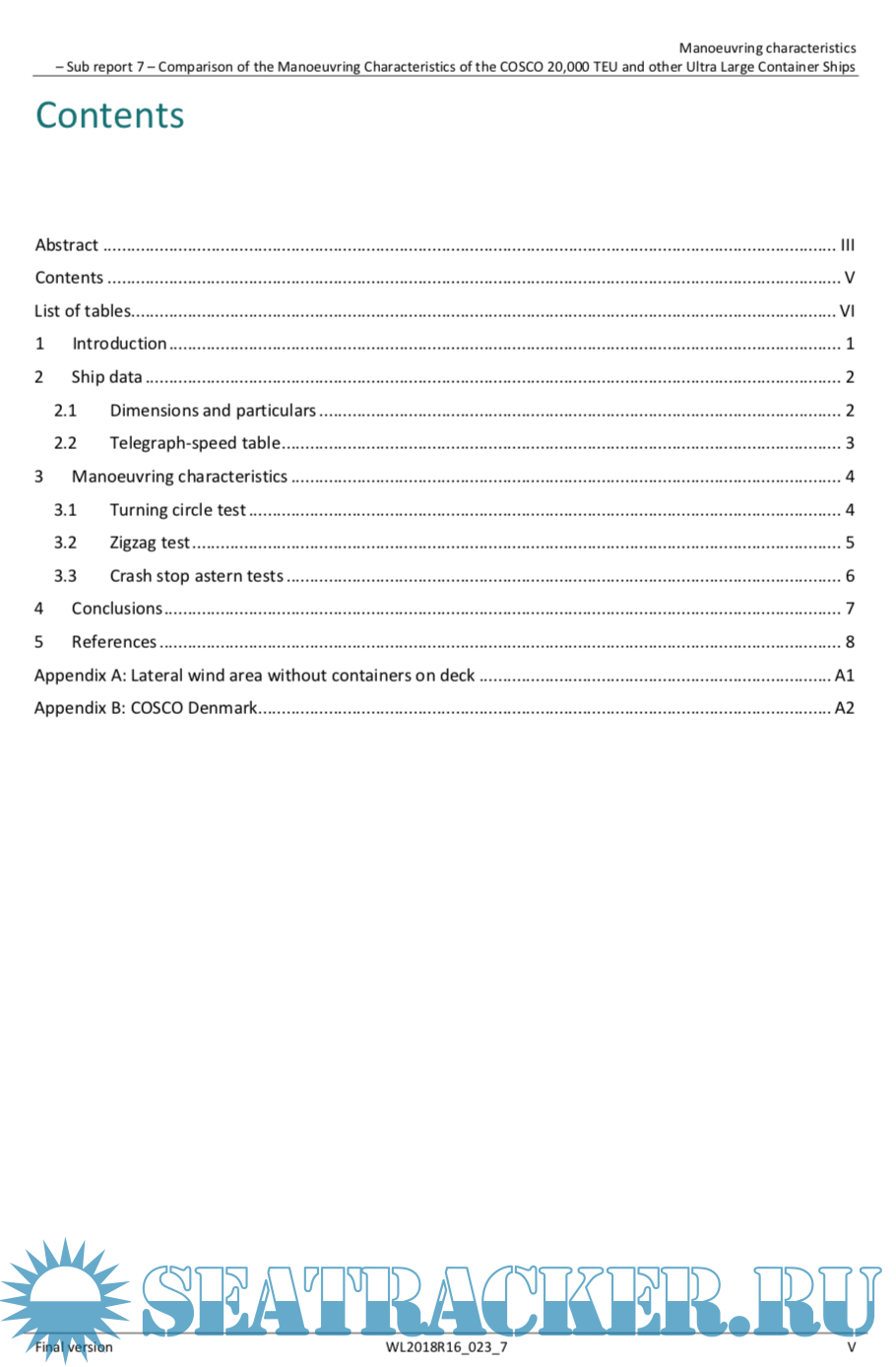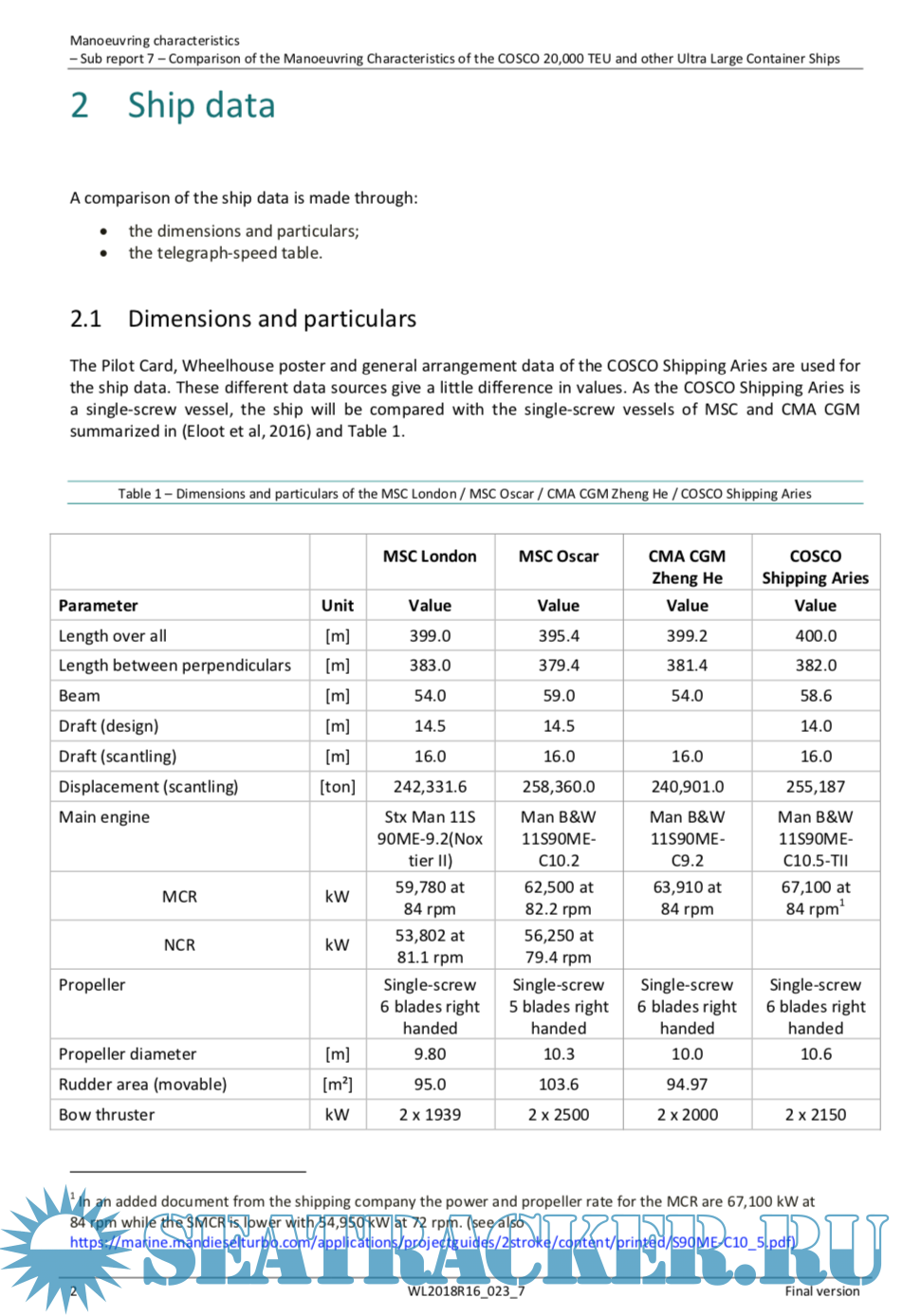 Manoeuvring characteristics Sub report 7 Comparison of the Manoeuvring Characteristics of the COSCO 20,000 TEU and other Ultra Large Container Ships